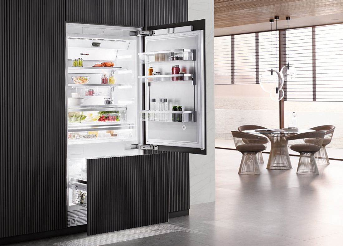 Push2open, bereits bei Wärme- und Vakuumierschubladen sowie Weinschränken öffnet nun auch die massiven Türen der großvolumigen Kühl- und Gefriergeräte. Dazu reicht ein kurzes Andrücken der Tür, das den integrierten Mechanismus aktiviert. So ist der „Wow-Effekt“ beim Öffnen noch ein wenig größer, unterstützt durch das neue Lichtkonzept BrilliantLight, das den Innenraum mithilfe schmaler LED-Lichtstreifen an den Innenwänden strahlend hell ausleuchtet.