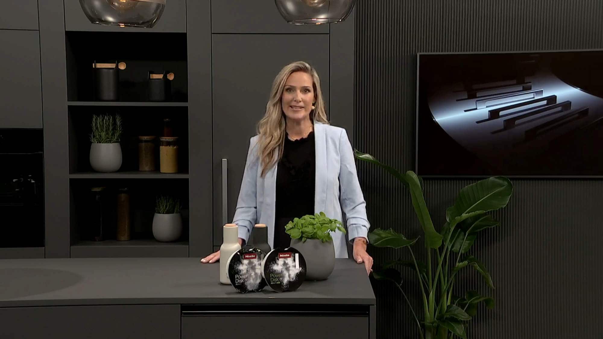 Moderierte die gut 75-minütige Miele-Präsentation: n-tv-Moderatorin Christiane Stein. Fotos: Miele; Screenshots Gabriel Wagner