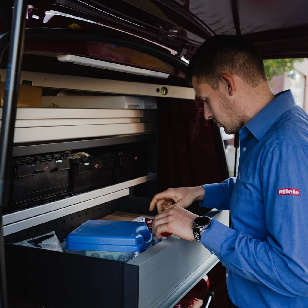 Seit vergangenem Herbst ist Miele auch mit neuen Geschirrspülern in der bestmöglichen Effizienzklasse A vertreten. Mehr als die Hälfte aller in den Handel gebrachten Miele-Geräte ist vernetzungsfähig. Das ermöglicht Remote-Updates, etwa für die schnelle und bequeme Bereitstellung attraktiver neuer Funktionen auch für Geräte, die schon Jahre in Gebrauch sind. Perspektivisch werden sich so auch Kundendienstfahrten reduzieren lassen.
