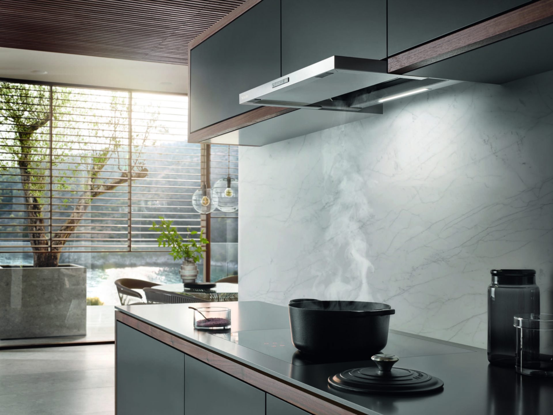 Neben der DAS 2620 wurde auch die Miele Kopffreihaube DAH 1950 Active getestet – und ebenfalls mit „gut“ (2,2) bewertet. Besonders in den Kategorien Geruchsbeseitigung sowie Sicherheit und Verarbeitung überzeugte das Modell. Die Bauform der Kopffreihaube bietet zudem mehr Bewegungsfreiheit beim Kochen und besticht durch ein puristisches, kompaktes Design.
