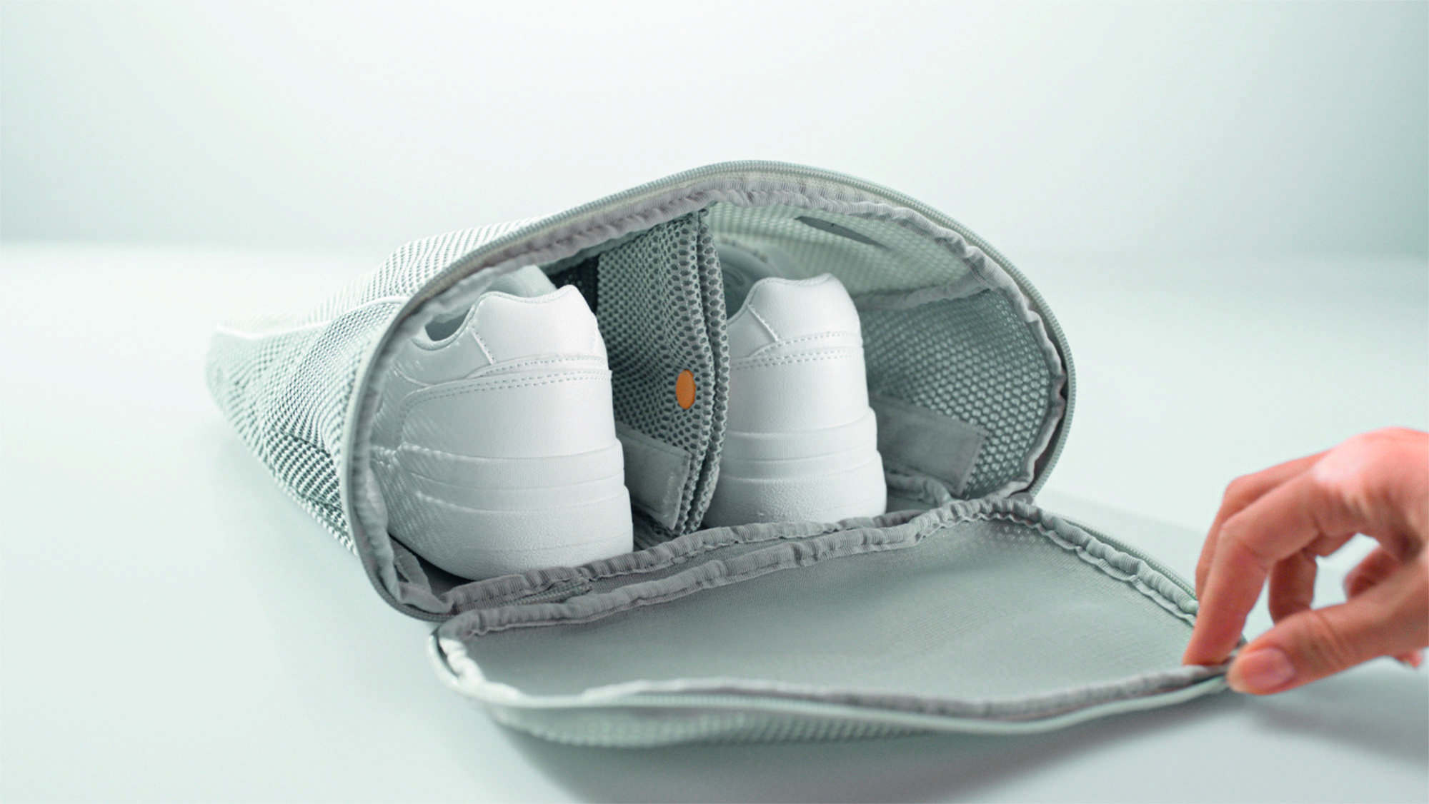 Perfekt ergänzt wird der neue Beutel durch die „SneakerTabs“. Das vordosierte Reinigungsmittel in Tabform ist speziell für die besonderen Anforderungen von Schuhmaterialien entwickelt. Dank einer hochwirksamen Enzymkombination entfernen die Tabs typische Verschmutzungen wie Erde und Gras bereits bei 30°C. Während die Farbschutzformel den Ton der Sneaker erhält, sorgt der leichte Duft für eine angenehme und langanhaltende Frische. Zur einfachen Dosierung verfügt der „SneakerWash Bag“ mittig auf der Außenseite über ein kleines Fach, in das genau ein „SneakerTab“ passt.