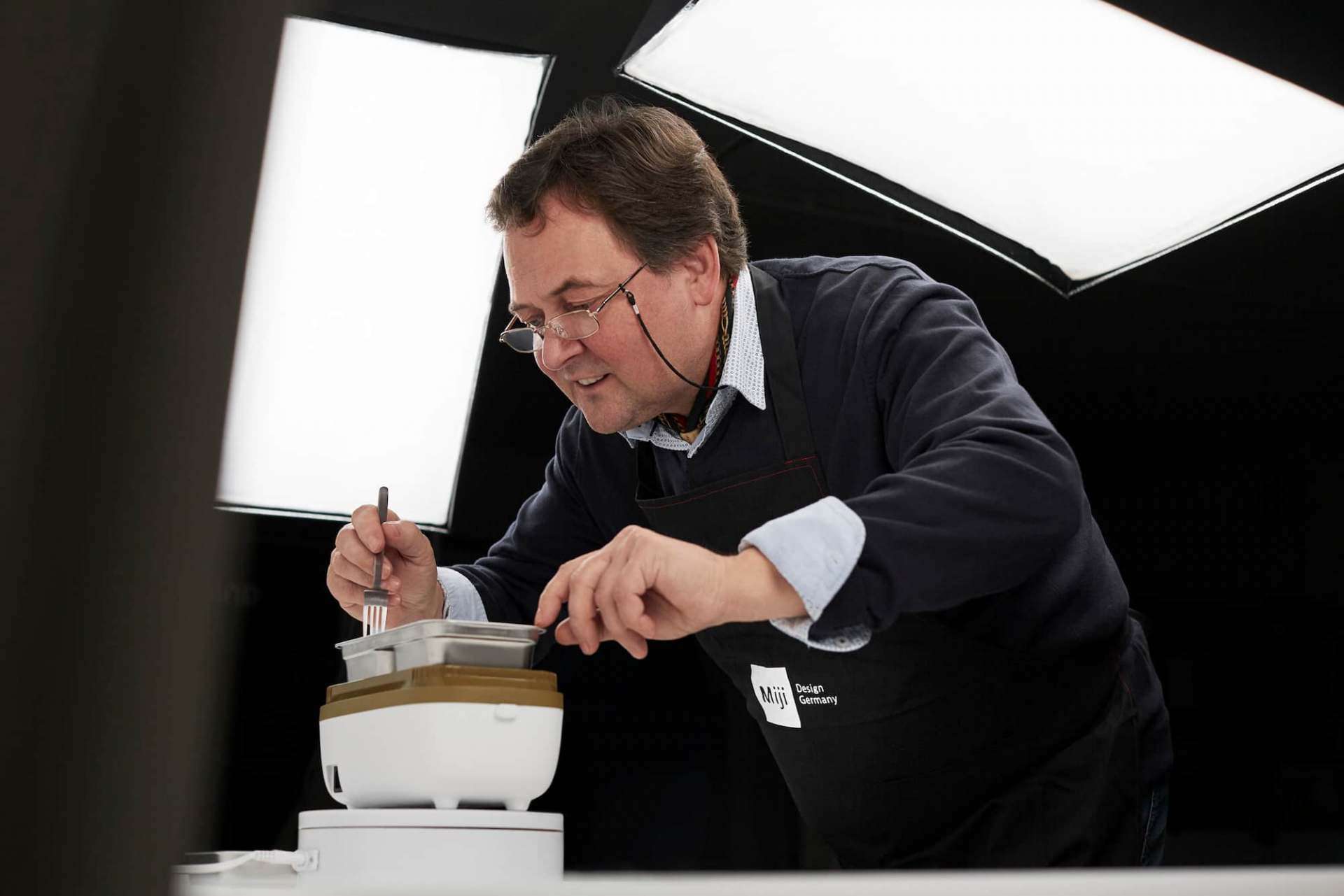 Im Fokus standen die drei aktuellen Highlight-Produkte der Marke: der nach eigenen Angaben kleinste Dampfgarer der Welt (Cookingbox One), das Induktionskochfeld Star 3 Twist sowie der Dampfbackofen IEO25L. Nach einführenden Informationen zum Unternehmen konnten sich die Teilnehmer von den Vorzügen des Kochens mit den Miji-Geräten begeistern lassen. Von Schweinebraten über vegetarische Bolognese und Steak auf Niedertemperatur bis hin zu hauchdünnen Crêpes zauberte Günther Rosskopf alles, was die Kochgeräte hergeben. Der Stream kann unter dem Link www.miji.de/livestream oder auf dem YouTube-Kanal von Miji nachträglich angesehen werden.