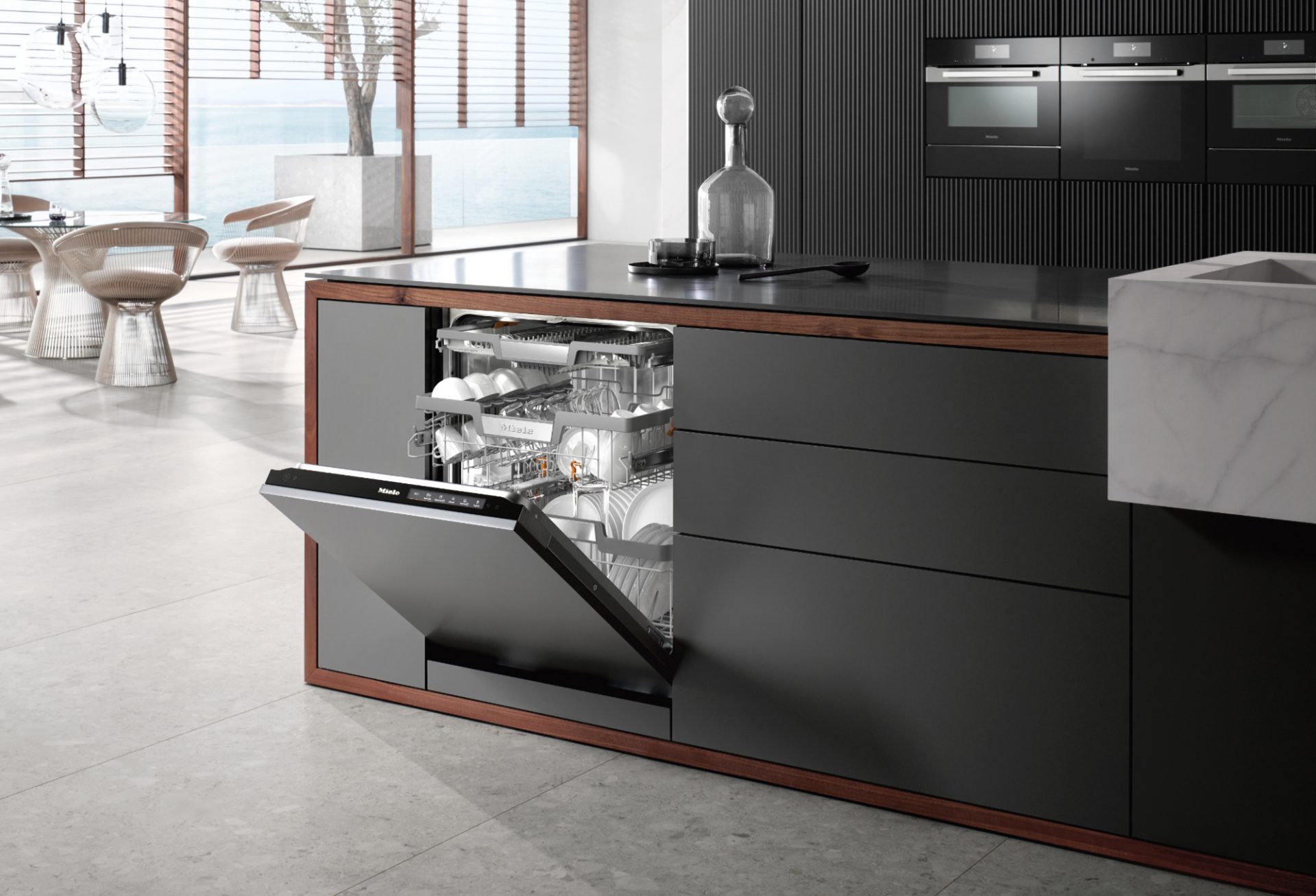 Im Ergebnis verbraucht eine Miele-Waschmaschine mit Energieeffizienzklasse A im Eco-Modus voll beladen im Durchschnitt 0,9 kWh je Waschgang. Vergleichbare Baumwollprogramme benötigen 1,4 kWh. Nur circa 0,5 bis 0,8 kWh verbraucht ein Geschirrspüler im Eco-Programm – statt 1 bis 1,2 kWh in einem von der Reinigungsleistung äquivalenten Programm. Weiteres Potential erschließt sich durch einen Warmwasseranschluss – dann benötigt zum Beispiel der Eco-Modus im Miele-Geschirrspüler sogar nur 0,29 kWh.