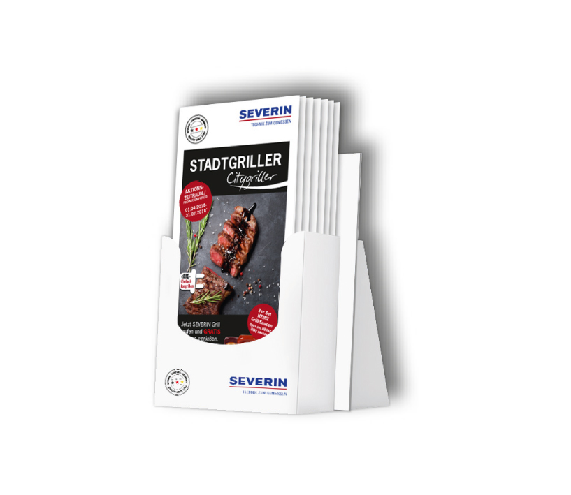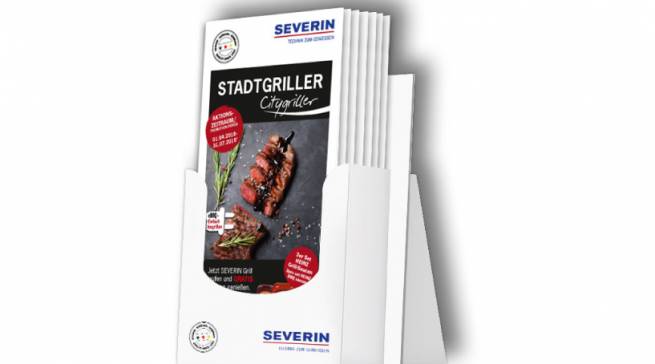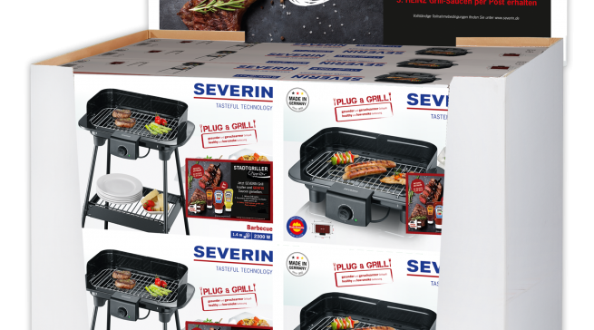 Damit auch direkt am POS Grillstimmung aufkommt, hat SEVERIN für den Handel ein attraktives POS-Paket entwickelt. Im Aktionszeitraum April bis Juli stellt SEVERIN zusätzlich ein attraktives Paletten-Set (SP 9423) mit Aktions-Topschild sowie einen Prospektständer zur Verfügung. Diese POS-Pakete werden über das Vertriebsteam in Verbindung mit individuellen Aktionspaketen zur Verfügung gestellt.