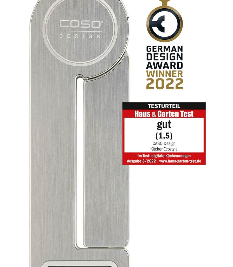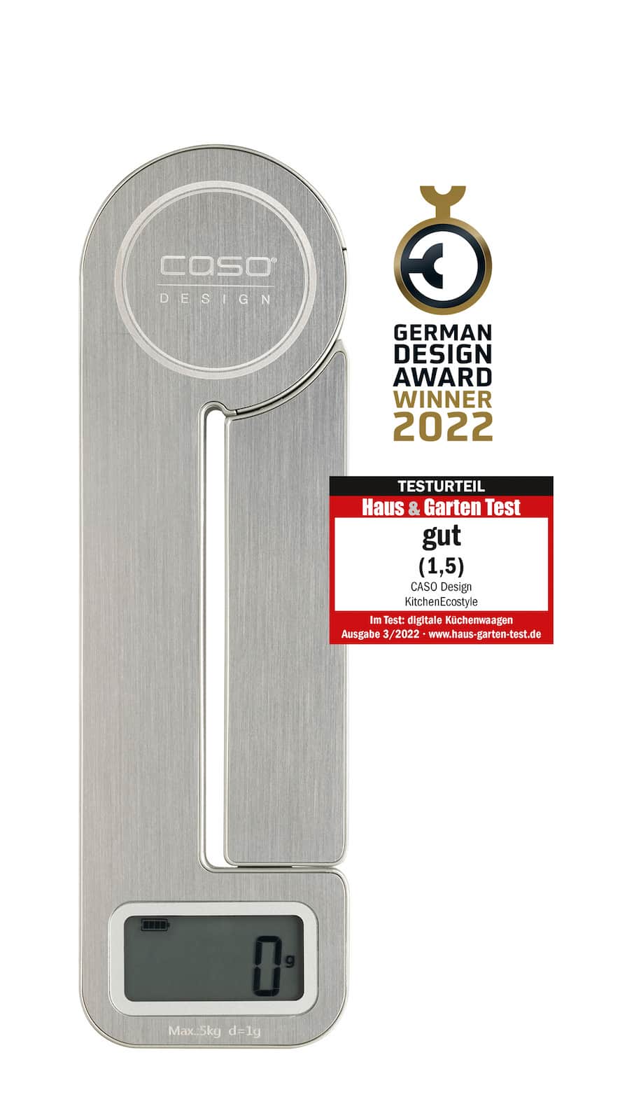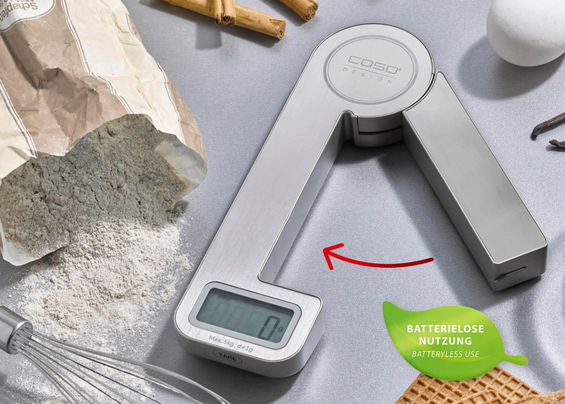 Umweltschonend und nachhaltig: Für die Küchenwaage Kitchen Ecostyle von Caso sind keine Batterien nötig. „Haus & Garten Test“ bewertet die Waage in der Ausgabe 3/2022 mit der Note 1,5 (gut).
