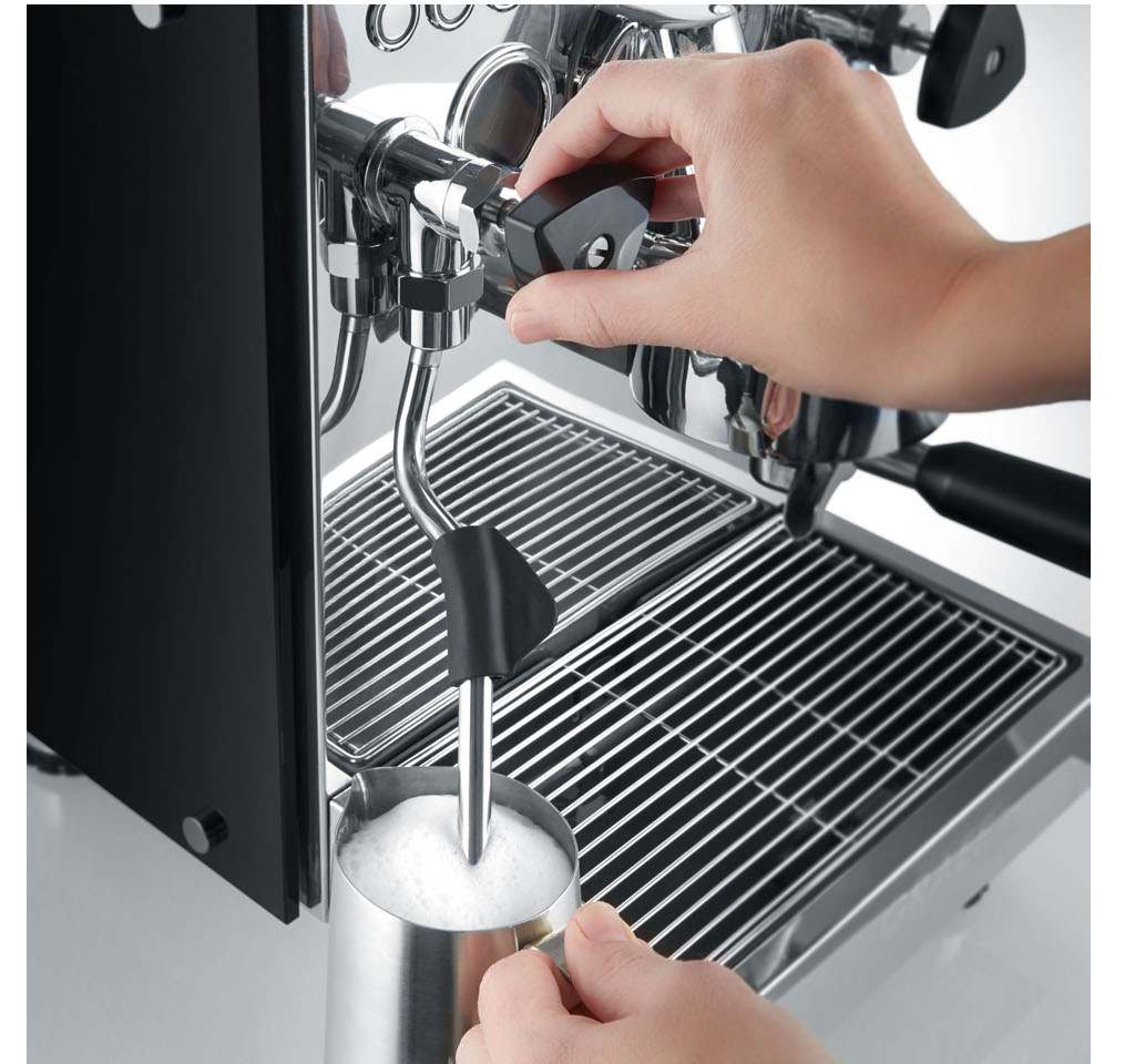 Statt wertvolle Energie zum Aufheizen des gesamten Wasserkessels zu verschwenden, arbeitet die „contessa“ praktisch „on Demand“. Das heißt: Es wird nur das tatsächlich benötigte Wasser erhitzt. Das spart bei der Zubereitung von aromatischem Espresso oder cremigem Latte macchiato nicht nur Zeit, sondern auch Strom. Apropos Latte macchiato & Co: Die um 360° schwenkbare Edelstahl-Dampflanze verfügt über einen integrierten Schlauch. Dieser sorgt dafür, dass während der Zubereitung nur die Dampfdüse erhitzt wird. Dank dieser „No Burn“-Funktion verbrennen sich Fans cremigen Milchschaums nicht mehr an der heißen Lanze, ein kleines aber wichtiges Detail.