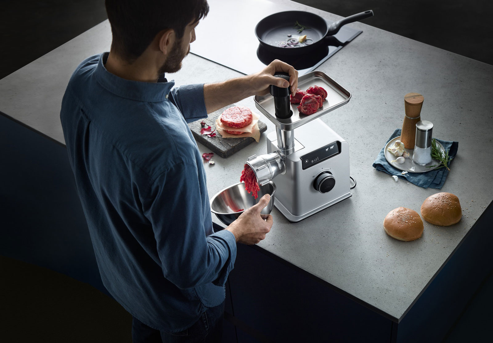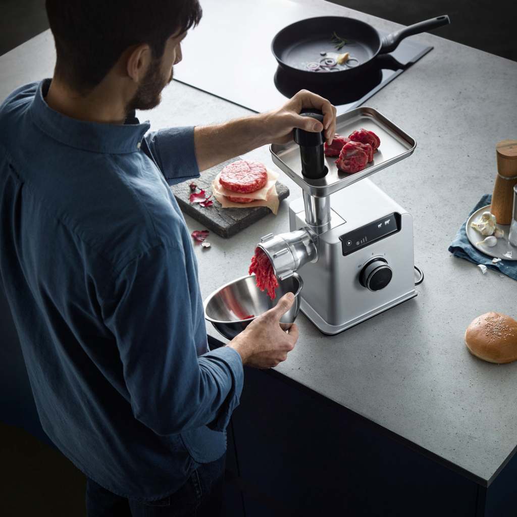 Mit dem neuen WMF Profi Plus Fleischwolf wird es möglich, auch daheim selbst Hackfleisch zu produzieren. Der neue Fleischwolf ist nicht nur robust und erstklassig konstruiert, er bietet auch beste Ausstattung mit hochwertigem und umfangreichem Zubehör. Gemacht für die höchsten Ansprüche von Küchen-Profis. (im Handel ab Juli erhältlich)