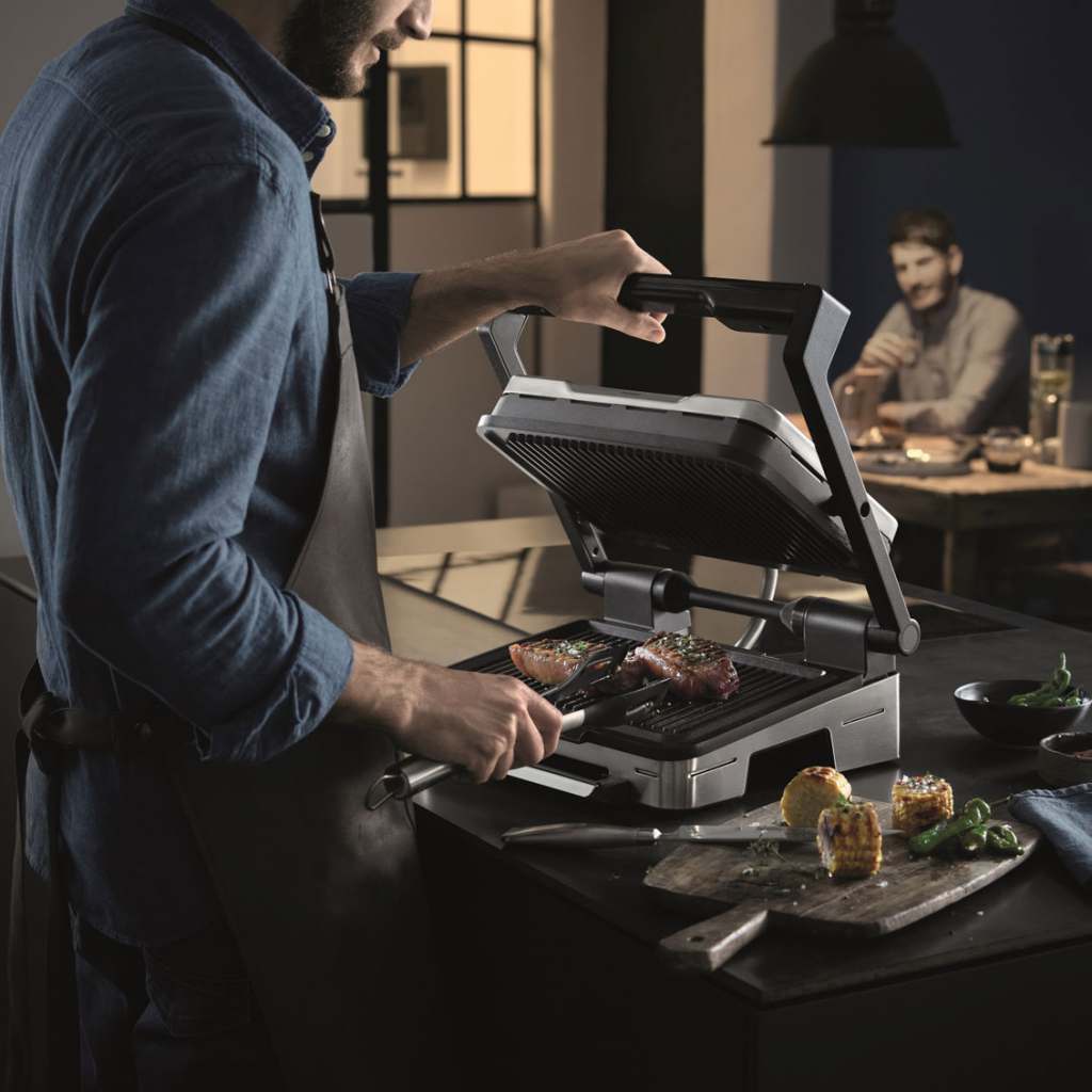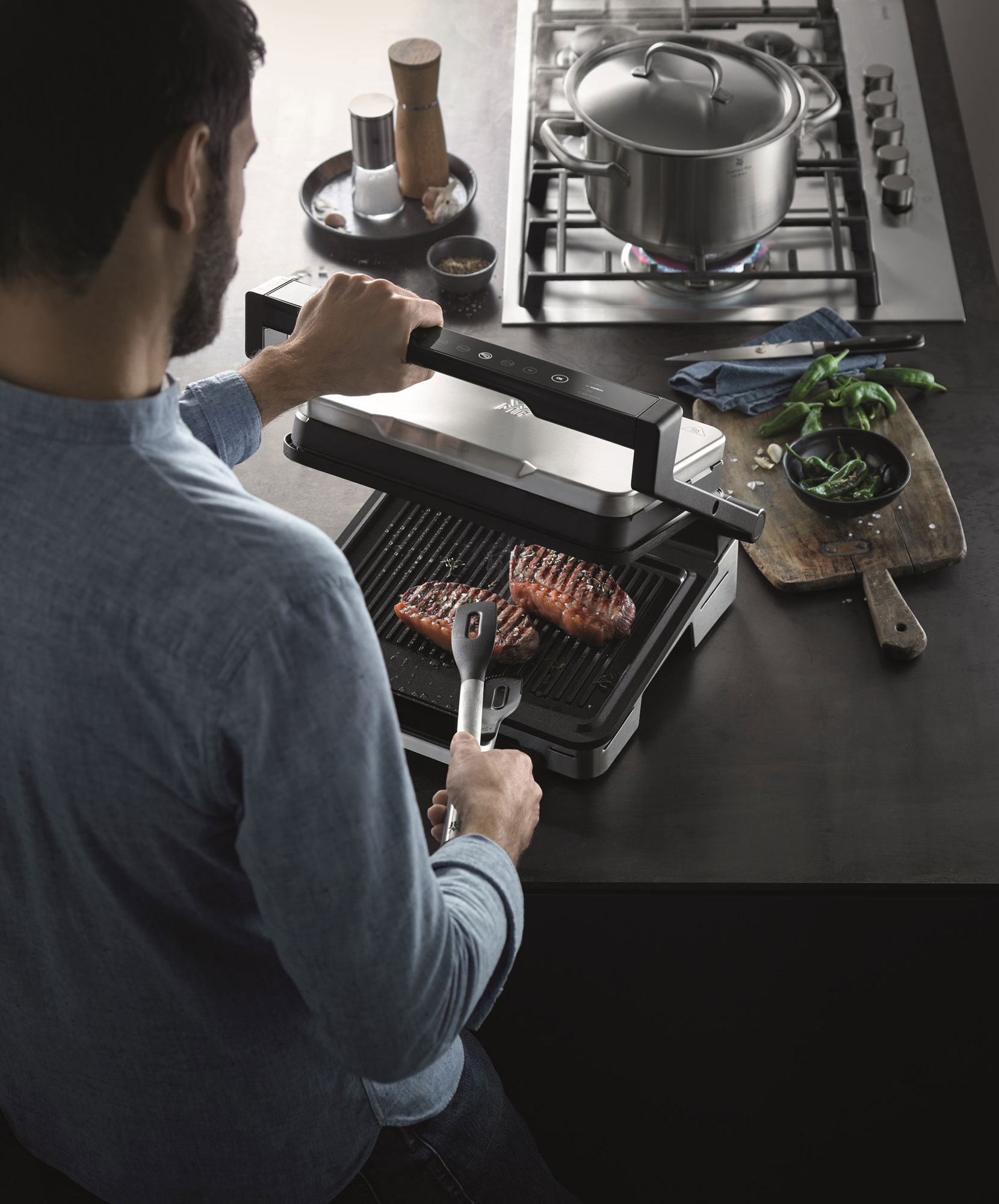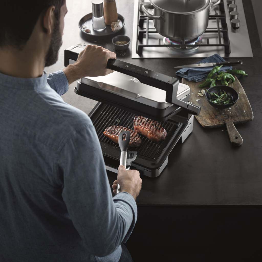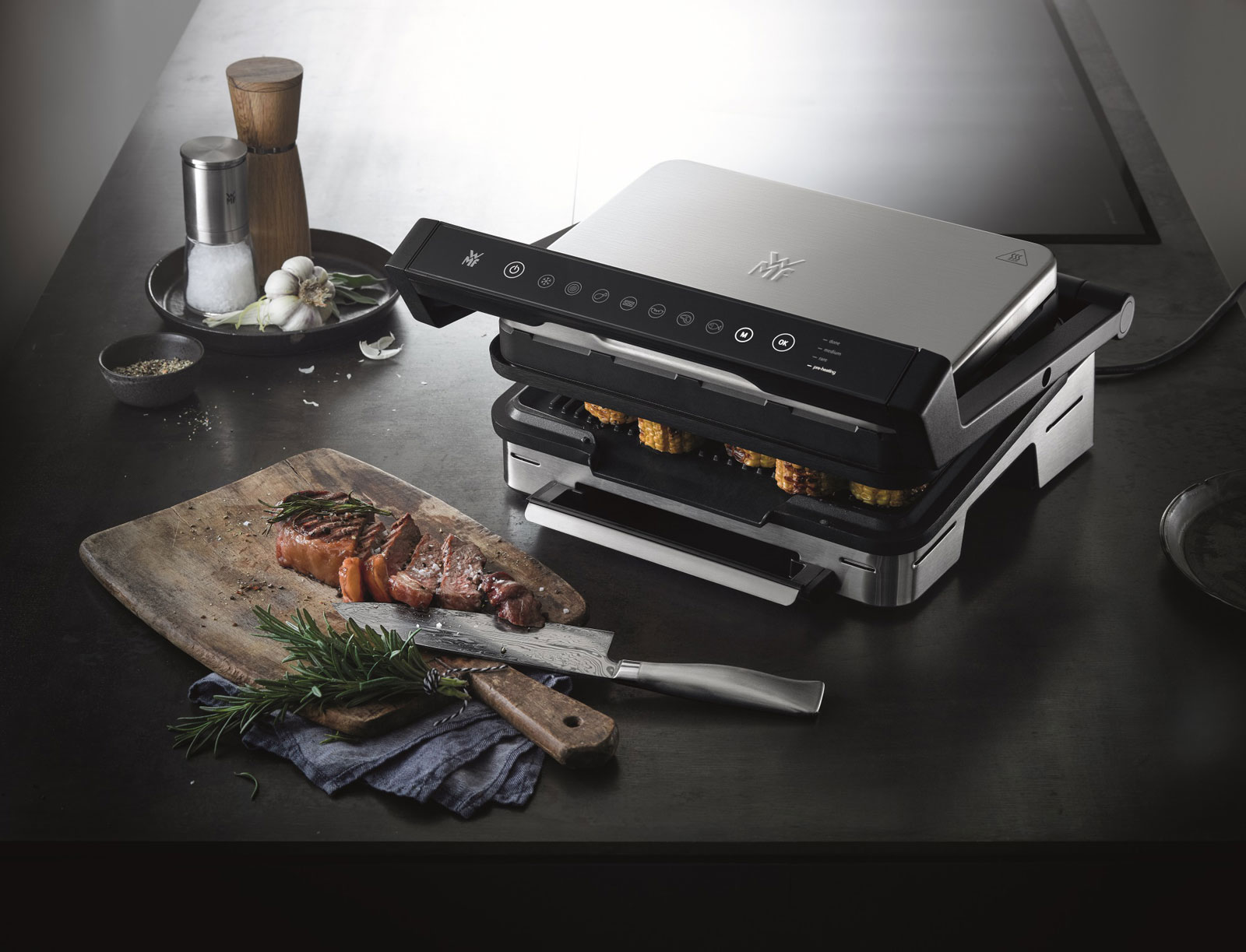 Der neueste WMF Tischgrill Profi Plus Kontaktgrill Perfection ist ein echtes Hochleistungsgerät und vereint hochwertiges Design und erstklassige Technologie mit umfangreicher Funktionalität unter Einhaltung höchster Sicherheitsstandards. Dank automatischer Sensortechnologie sorgt der WMF Kontaktgrill für perfekte Grillergebnisse unabhängig von Dicke und Größe des Grillguts. (ab sofort erhältlich)
