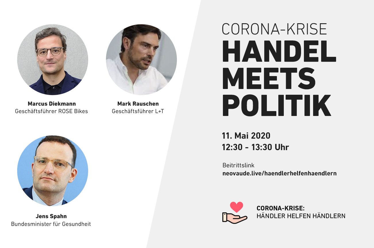 Der Digital-Talk der Pro-Bono-Initiative „Händler helfen Händlern“ – infoboard.de gehört zu den Unterstützern der ersten Stunde – geht mit einem prominenten Gast in die 6. Auflage. Bereits am kommenden Montag (11. Mai, schon mittags um 12.30 Uhr!) begrüßt Marcus Diekmann Gesundheitsminister Jens Spahn (CDU) in dieser spannenden wie hochinformativen Gesprächsreihe, dieses Mal unter dem Motto „Handel meets Politik“.