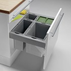 Eine weitere Möglichkeit in kleinen Küchen, so die AMK, ist die Nutzung eines cleveren Auszugssystems. Intelligente Beschlagstechnik macht es möglich, dass die kompakte Mülltrenneinheit beim Öffnen einer Kücheneckschranktür automatisch aus dem Schrank herausgleitet und dem Anwender so übersichtlich zur Verfügung steht. Beim Schließvorgang verschwindet sie dann wieder komplett in den Tiefen des Eckschranks.