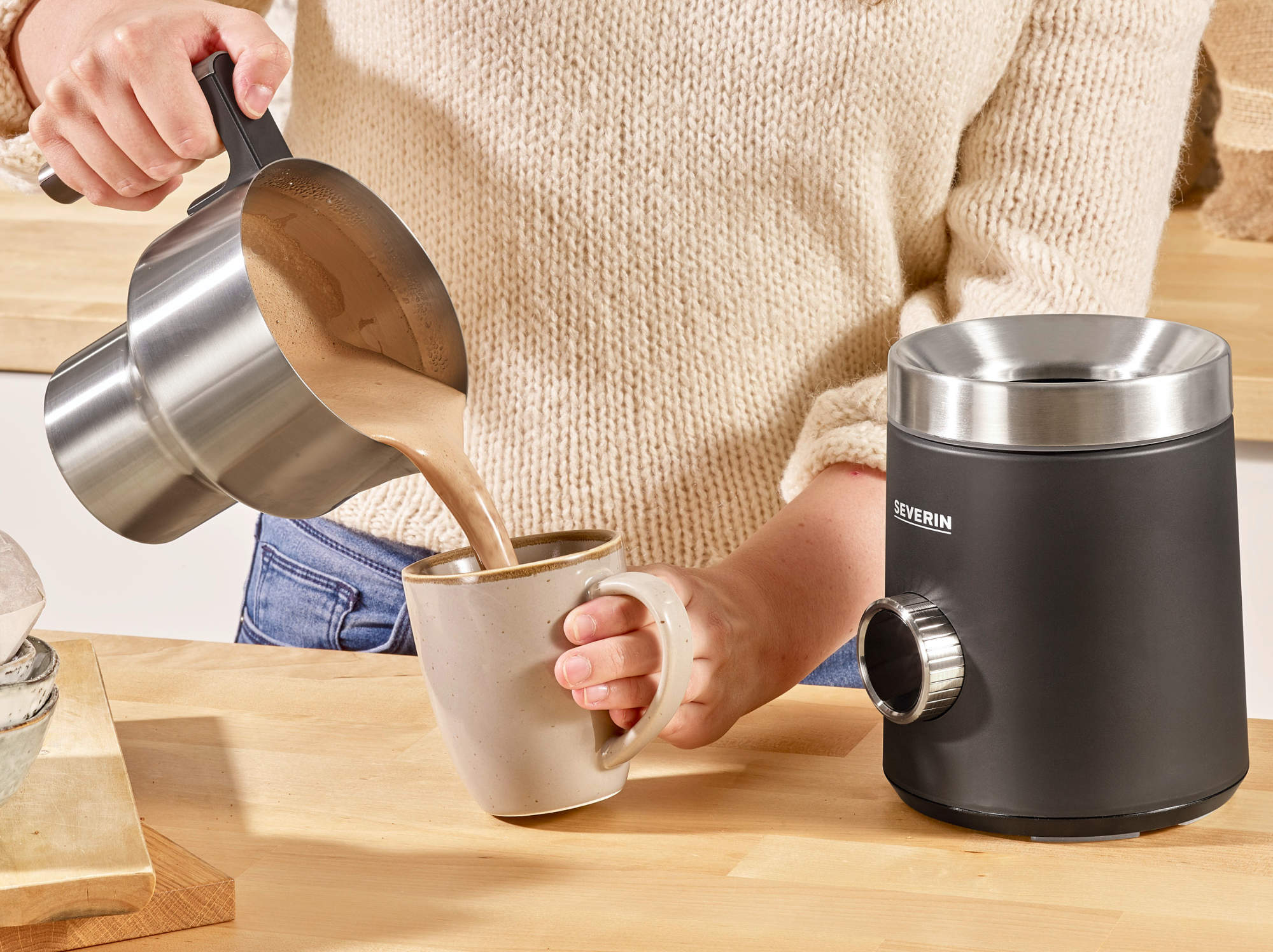 Das nennen wir mitgedacht: Mit dem multifunktionalen Milchaufschäumer von Severin gelingt nicht nur die Tasse Heiße Schokolade auf Knopfdruck – und das mit ganzen Schokoladenstückchen. Noch besser: Für den Weihnachtsmarkt-Flair in den eigenen vier Wänden hat der Spuma 700 Plus sogar ein spezielles Glühwein-Programm mit an Bord. Auch raffinierte Rezepte wie Apfelpunsch und weiße Schokolade bereitet der Alleskönner bequem und einfach zu.