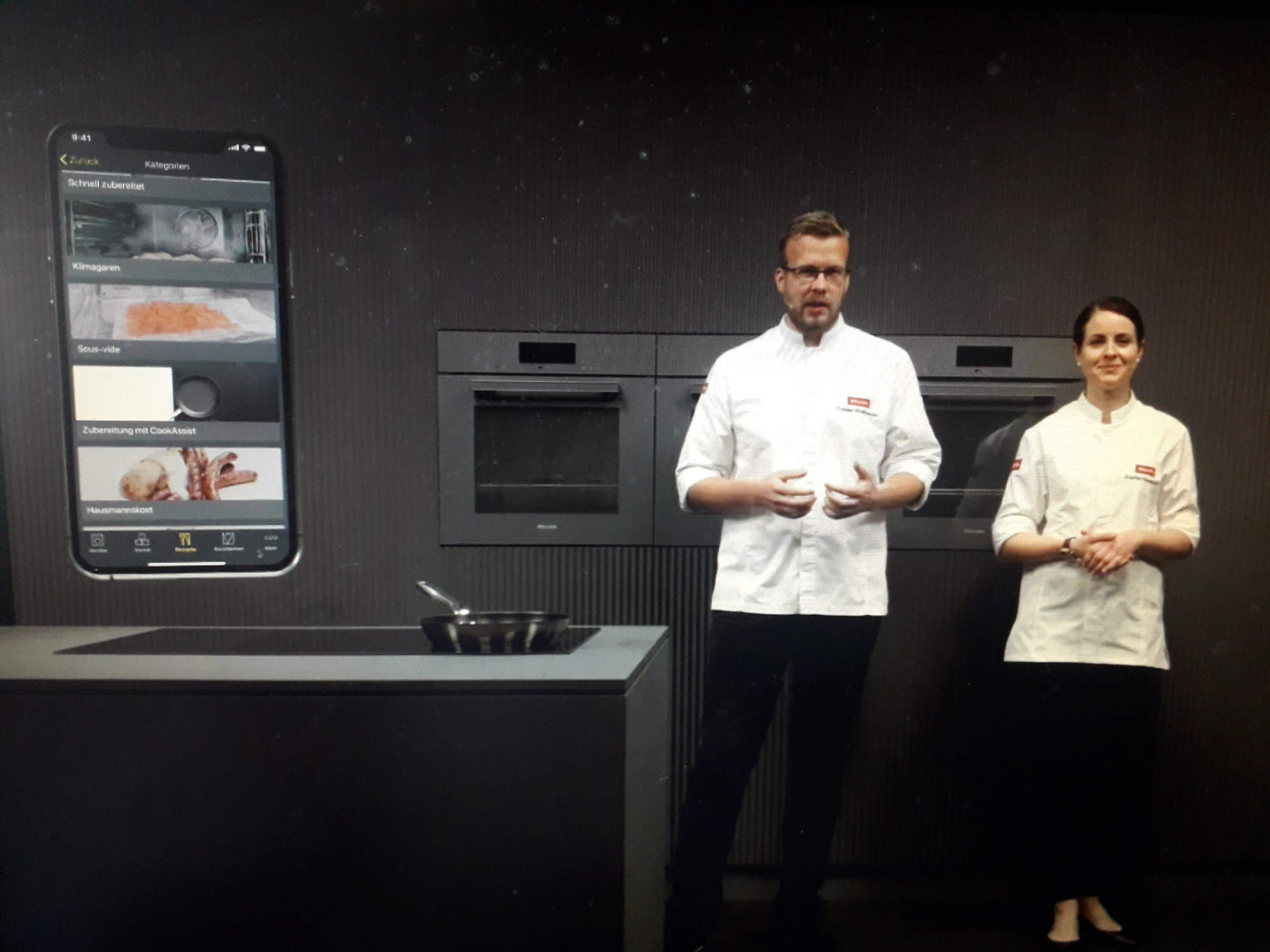 Miele-Koch Tobias Wulfmeyer zeigte zusammen mit Kochtrainerin Sophia Neuendorf, wie Miele mittels künstlicher Intelligenz das Kochen auf ein neues Level hebt. Mit neuen, intelligenten Assistenzsystemen startet Miele jetzt in ein ganzheitlich digitales Kocherlebnis. Schaltzentrale dafür ist die Miele Smart Home App.
