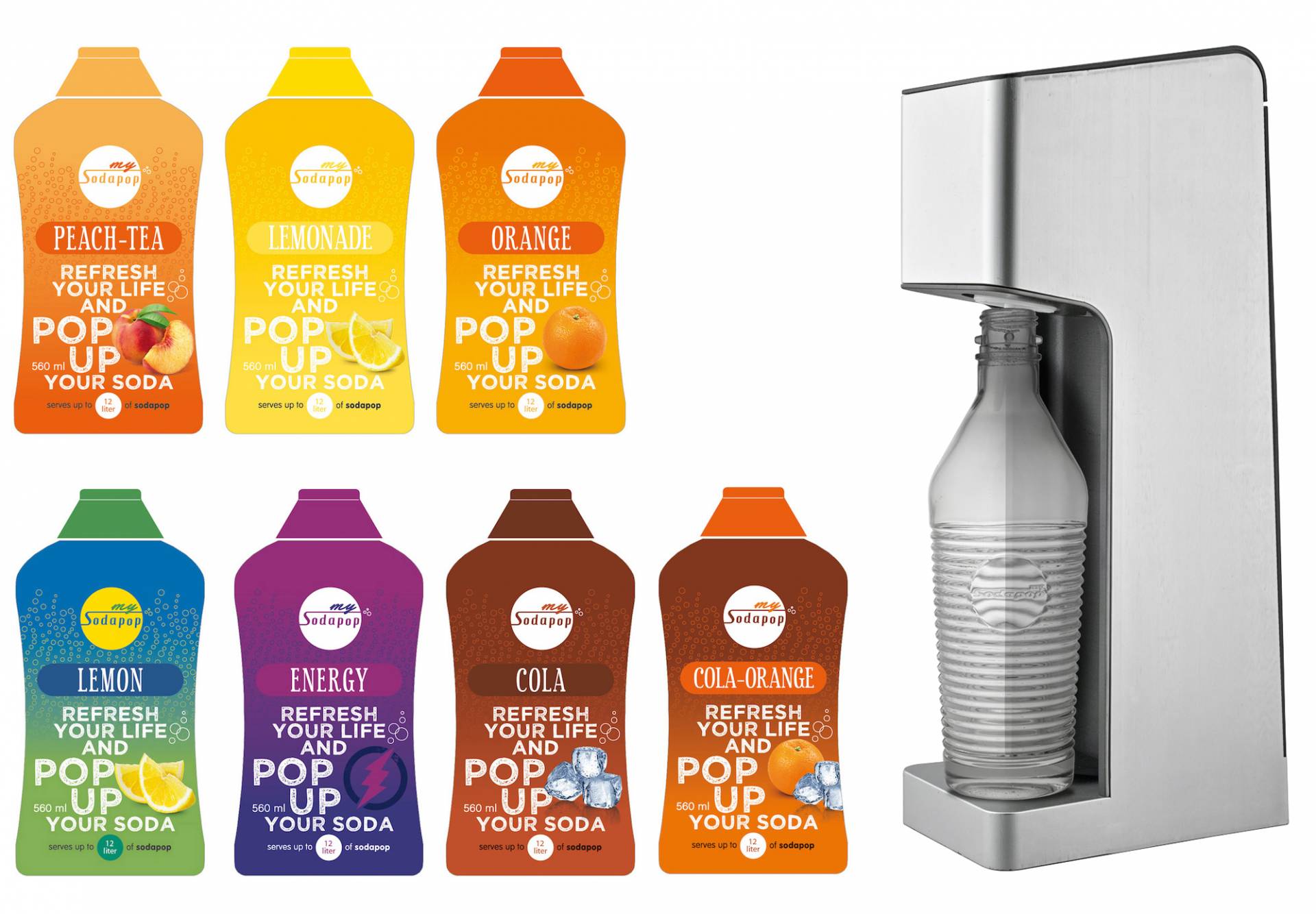 Der Unterschied zu bestehenden Systemen fällt sofort ins Auge: Das Design der Geräte wurde in Deutschland entwickelt und zeigt schlichte Eleganz. Die Flaschen bestehen aus hochwertigem Glas, fassen ein Liter Volumen und sind einfach zu reinigen. Bei der Entwicklung der mySodapop Essences wurde auf nationale Geschmacksvorlieben, biologische Trends und innovative Verpackungen gesetzt.