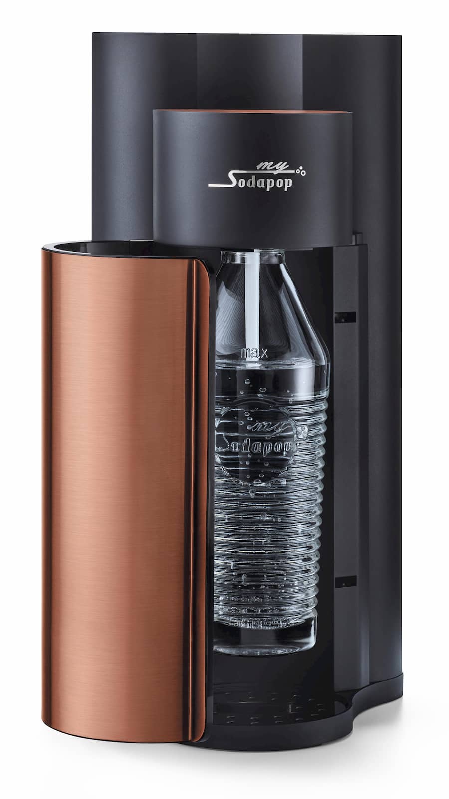 Harold bietet ein edles Design aus gebürstetem Edelstahl. Der Flaschenschacht ist während des Sprudelns geschlossen. Damit ist Harold das erste geschlossene System von mySodapop. In der Rückseite kann ein zweiter CO2-Zylinder für schnelleres und komfortableres Wechseln untergebracht werden. Das Superior Sodasystem ist in den Farben Kupfer, Silber und Weiß erhältlich und wird mit zwei Glasflaschen und einer PET Flasche zum Preis von 129 € (UVP) geliefert.