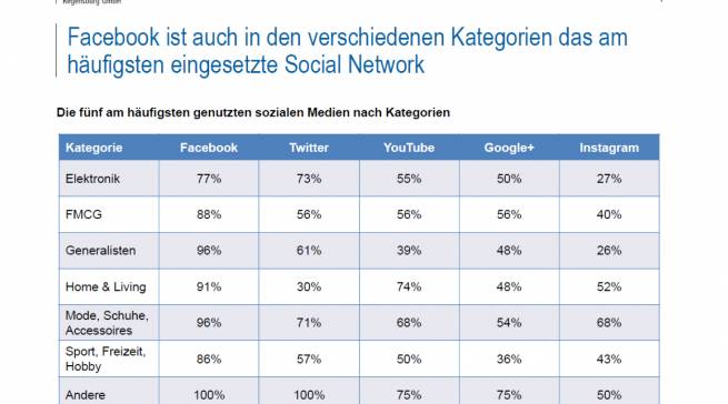 Gerade die Einbindung Sozialer Medien im Onlineshop ist inzwischen weit verbreitet: 91 Prozent der getesteten Shops nutzen Facebook, 61 Prozent Twitter, 60 Prozent YouTube und 51 Prozent Google+. Die großen Online-Händler unterscheiden sich hier unwesentlich von den kleineren und mittleren Händlern des Untersuchungspanels; Branchenunterschiede sind kaum festzustellen.