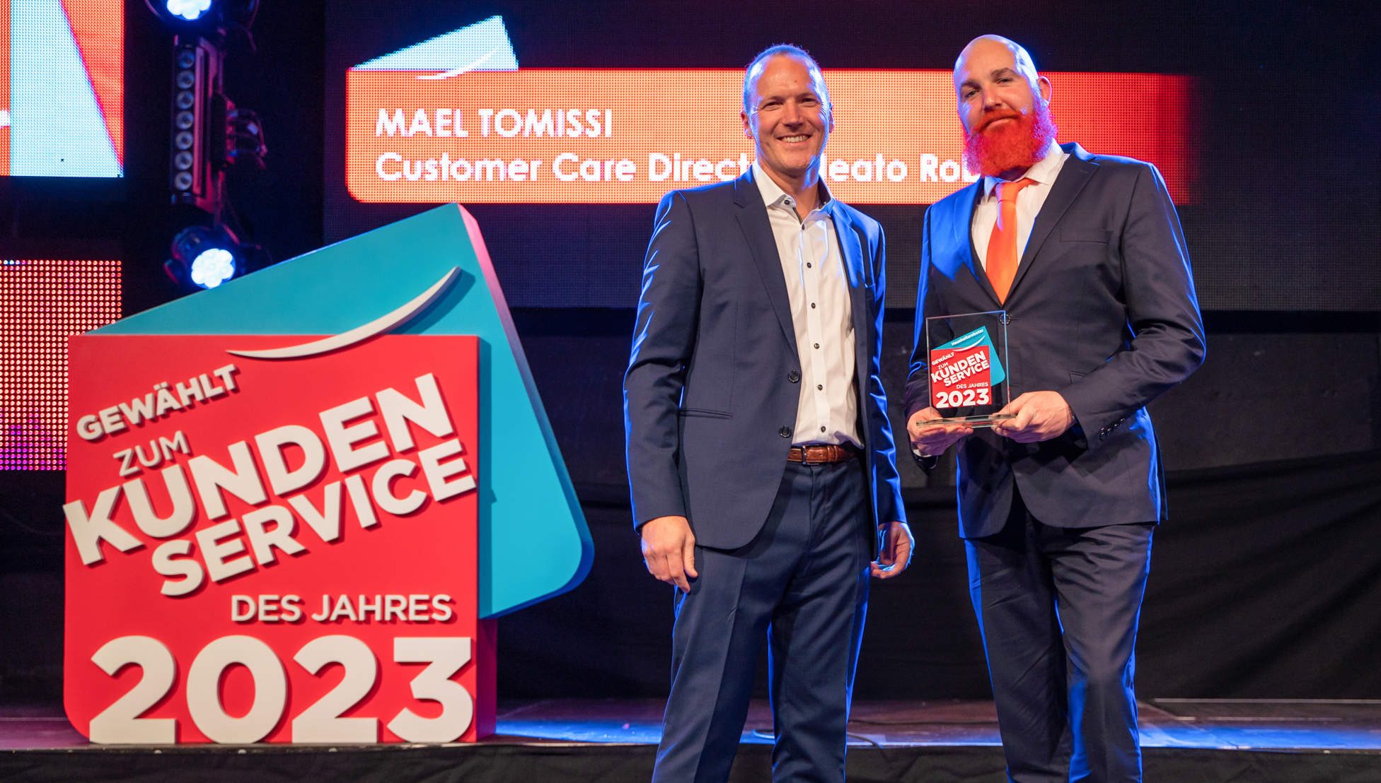 Kundenservice des Jahres: Maturin Craplet, CEO von Armonia Deutschland und Mael Tomissi, Director of Customer Care, Neato Robotics.
