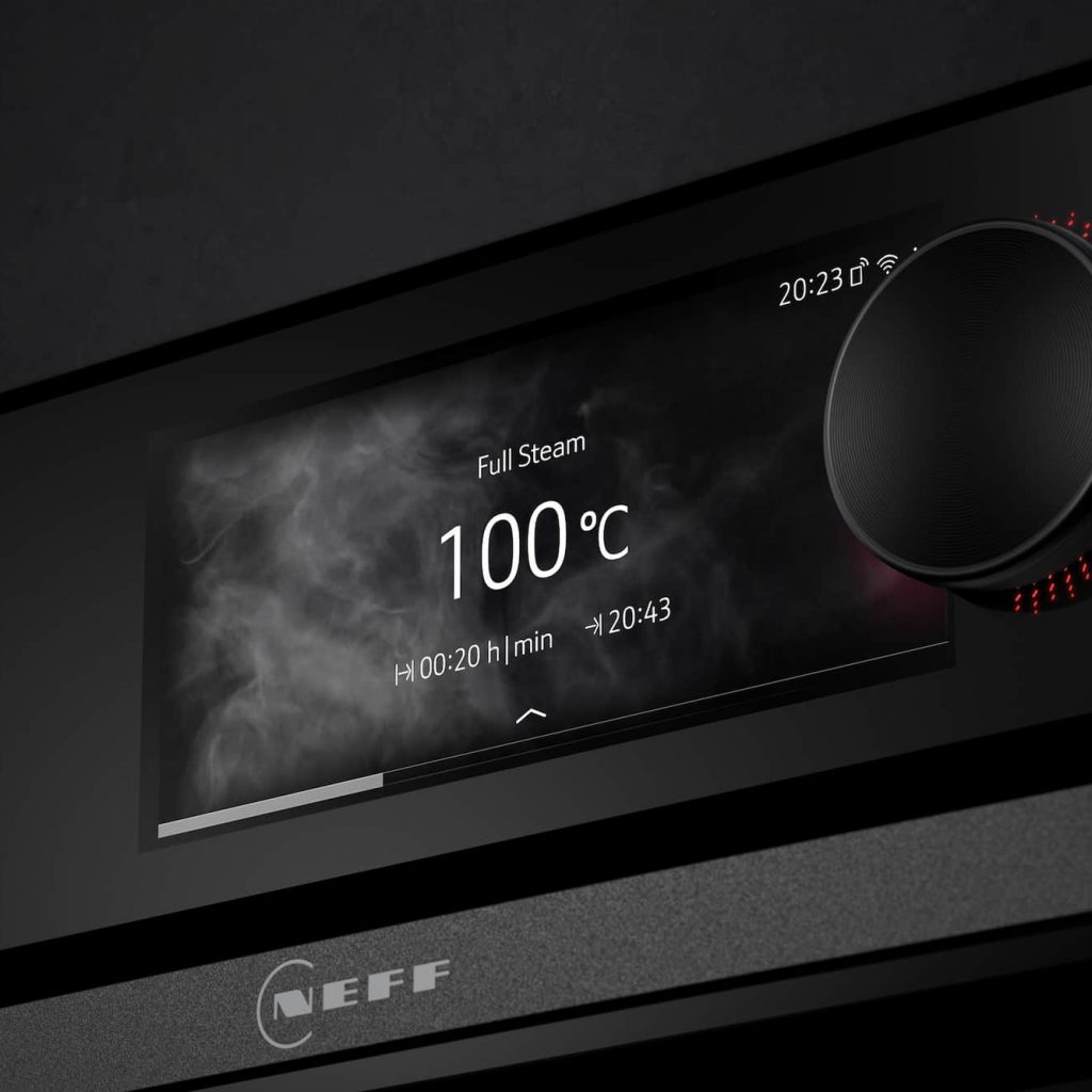 Ein hochauflösendes 6,8 Zoll Premium-Display ist Hauptdarsteller im neuen Neff-Kosmos. Dieses ist in Kaffeevollautomaten und Backöfen der Neff Collection verbaut und bietet eine so flexible Oberfläche, dass sie sowohl via Fingertipp als auch über das magnetisch haftende Twist Pad Flex bedient werden kann.