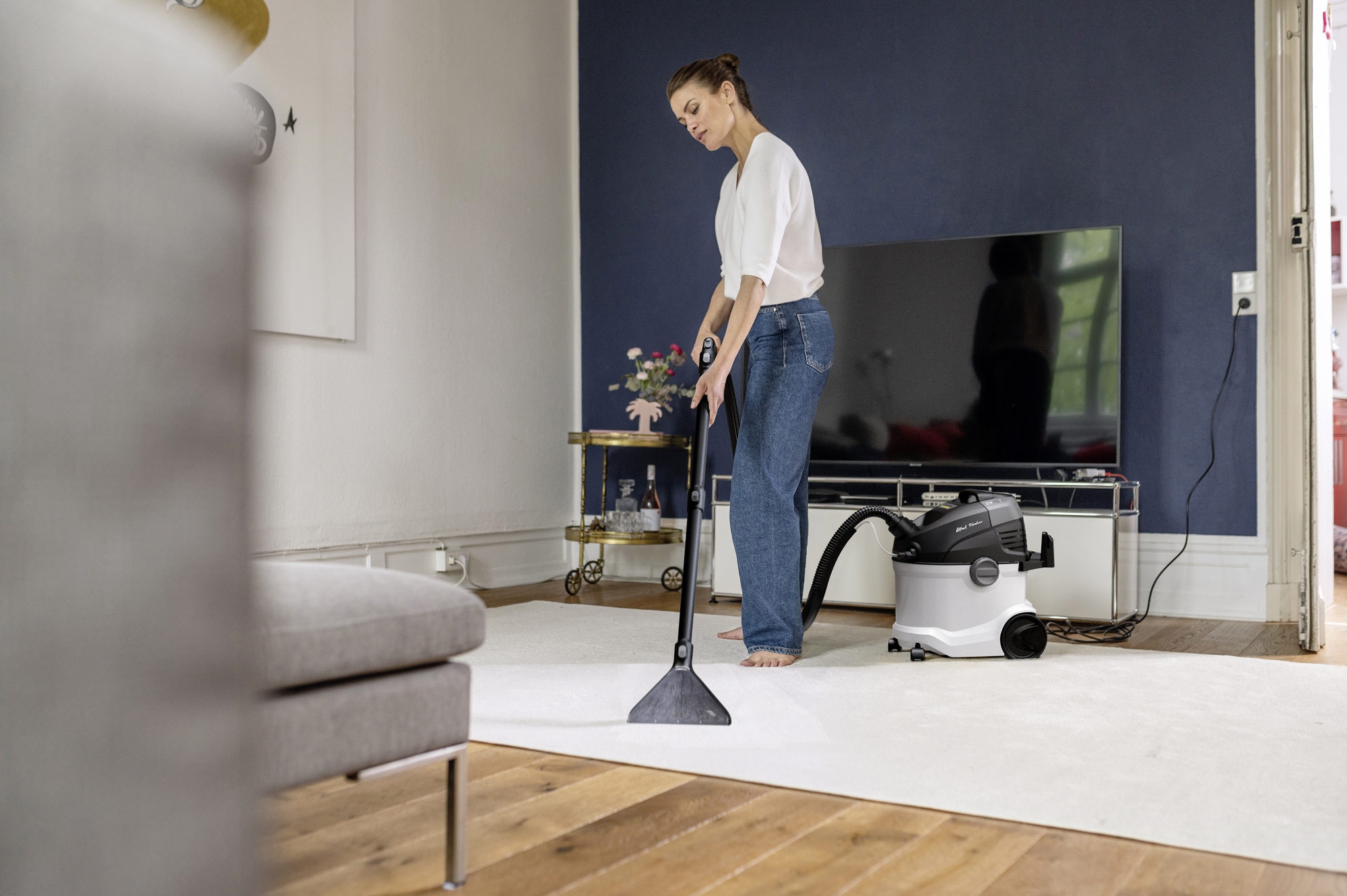 - SE 6 Signature Line: leistungsstarker Motor, Arbeitsradius: 8 m, 2-in-1 Sprühextraktionsschlauch mit integriertem Reinigungsmittelschlauch, 4-Liter-Wassertanks