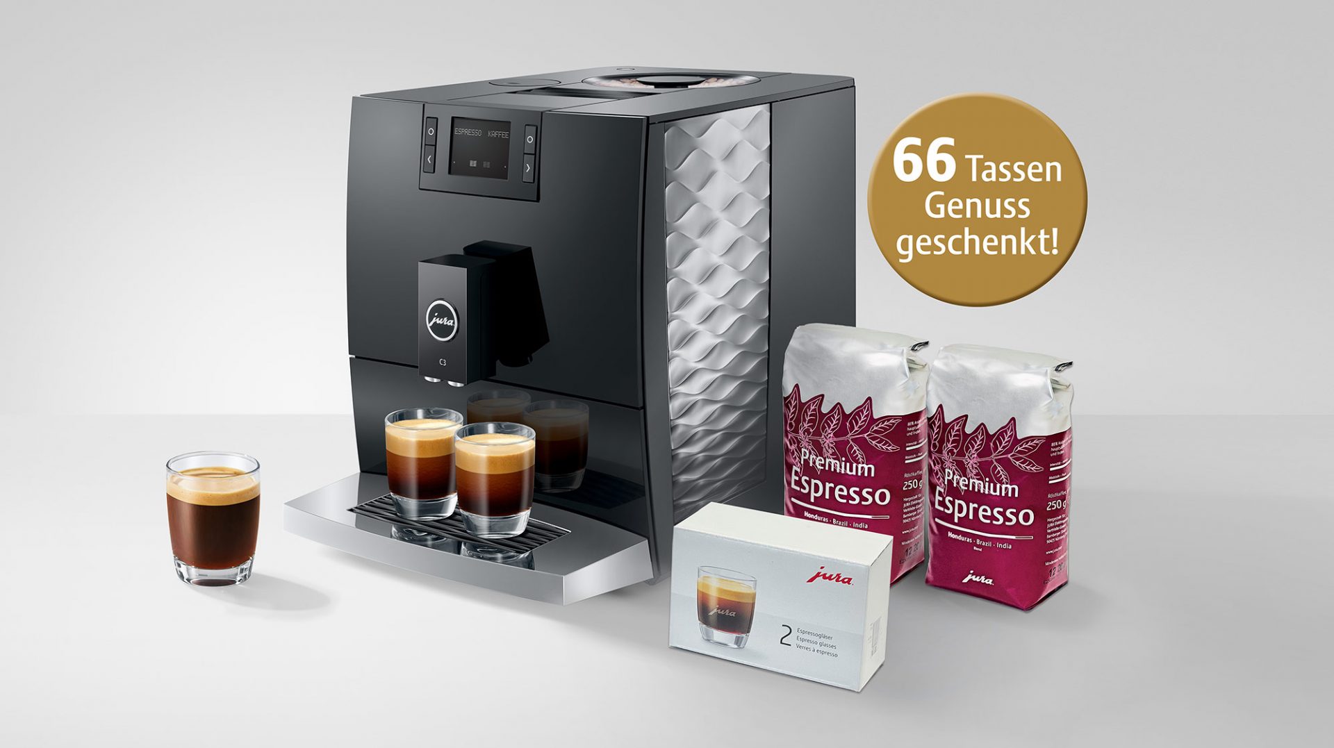 Im Rahmen einer exklusiven Zugabe-Aktion erhalten Endverbraucher beim Kauf einer C3 Piano Black (EA) zwischen dem 15. April und dem 30. Juni 2025 ein Paket bestehend aus zwei Packungen Premium-Espresso (je 250 g), einem 2er-Set Espresso-Gläsern sowie einer informativen Kaffeebroschüre gratis dazu.