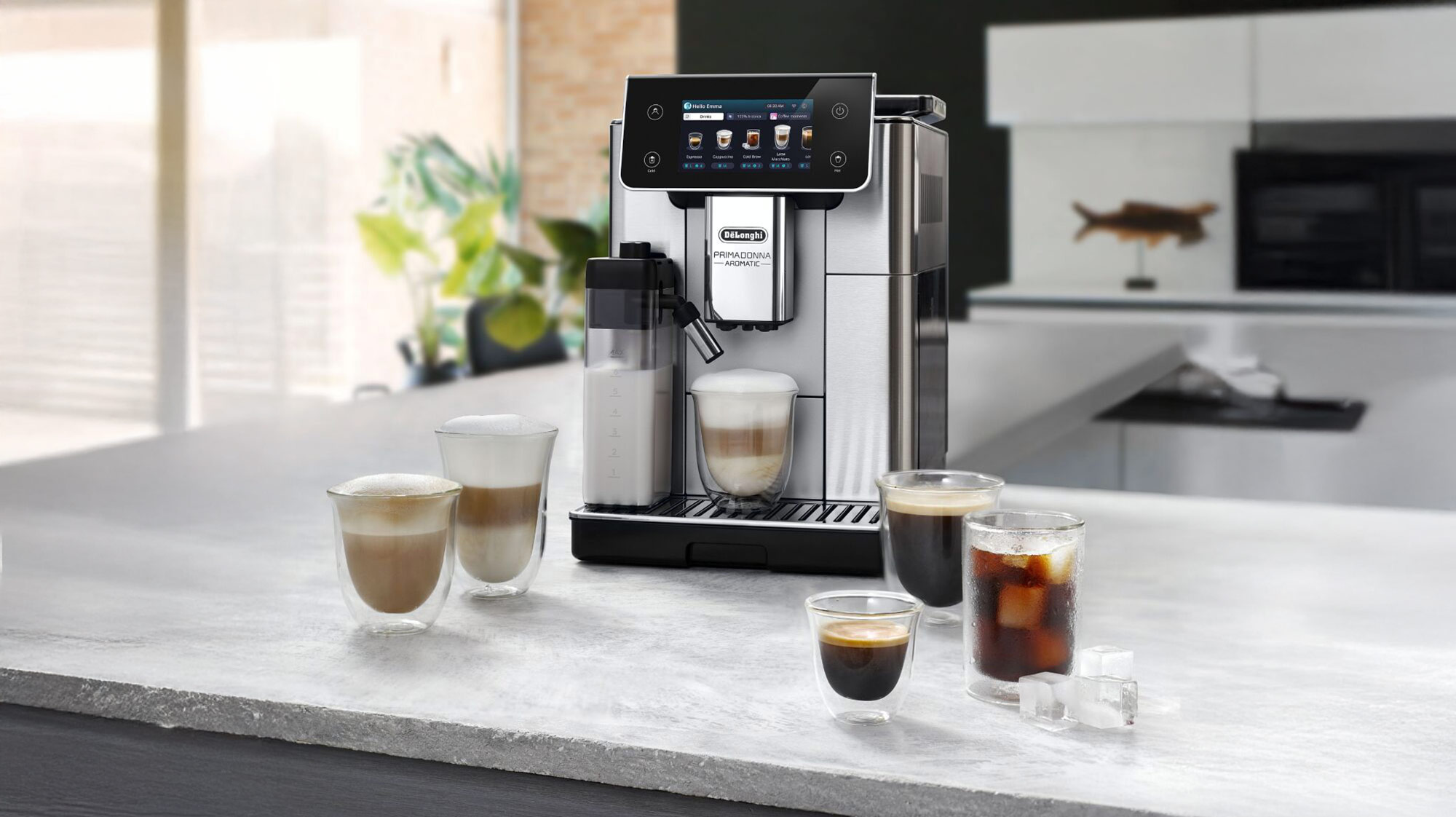 Die Maschine ist mit einem robusten Edelstahlgehäuse ausgestattet und wurde für ihre Gestaltung mit dem iF Design Award ausgezeichnet. Das 5-Zoll-Full-Touch-Display ist leicht geneigt und fügt sich optisch in die Gesamtgestaltung ein. „Das elegante Erscheinungsbild der PrimaDonna Aromatic zeugt von höchster Handwerkskunst und modernster Technologie“, so Marco Vaona, Lead Product Designer bei De’Longhi.
