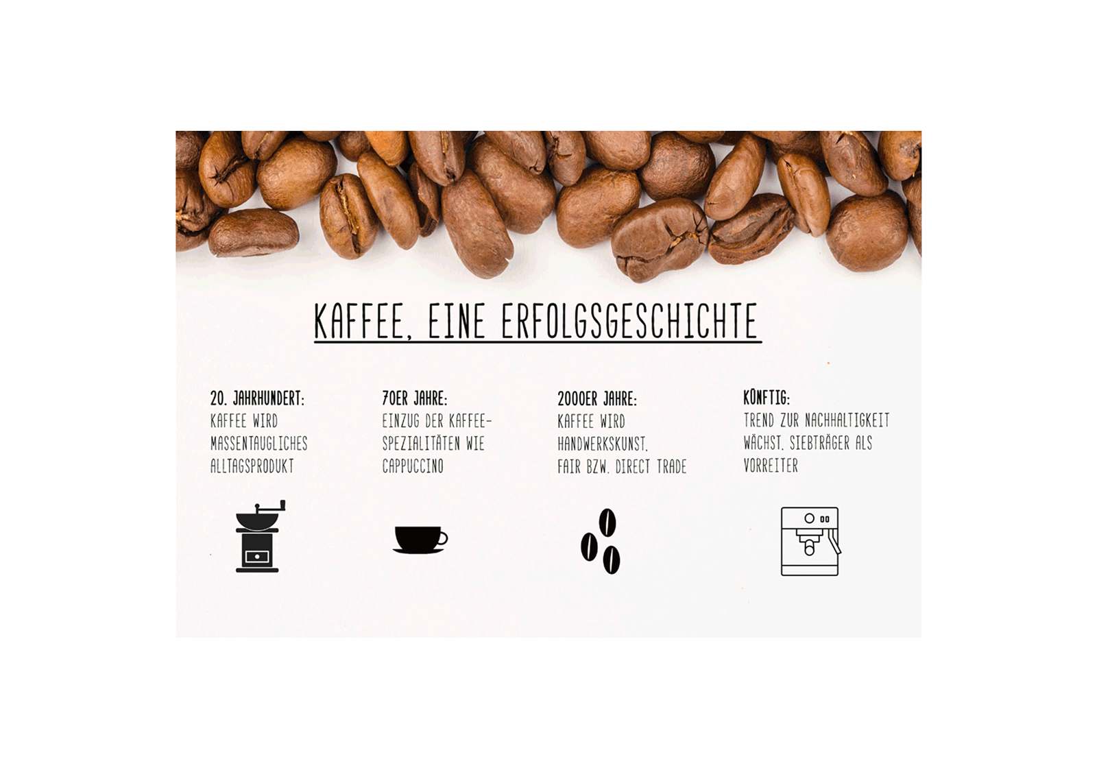 Die Liebe der Deutschen zum Kaffee hat schon lange den angestaubten Ruf vom Kaffeeklatsch verloren. Kaffee ist Kunst, wer ihn trinkt, ist hip und wer ihn richtig zubereiten kann, ist Trendsetter. Dazu passt: Der Kaffeekonsum im Land nimmt jährlich zu, Tendenz steigend. Laut dem Deutschen Kaffeeverband wurden 2020 etwa 20 Tassen Kaffee pro Kopf mehr getrunken – mit 11% Anstieg hat der Konsum in den eigenen vier Wänden einen Löwenanteil am Wachstum. Seit den 1980er- und 1990er-Jahren befinden wir uns in der sogenannten „Third Wave“. Sie wurde von kleinen Pionieren eingeläutet und schließlich von – heute großen – Playern wie Starbucks etabliert. Mittlerweile rücken in der dritten Welle Qualität, Fair bzw. Direct Trade mehr in den Fokus.