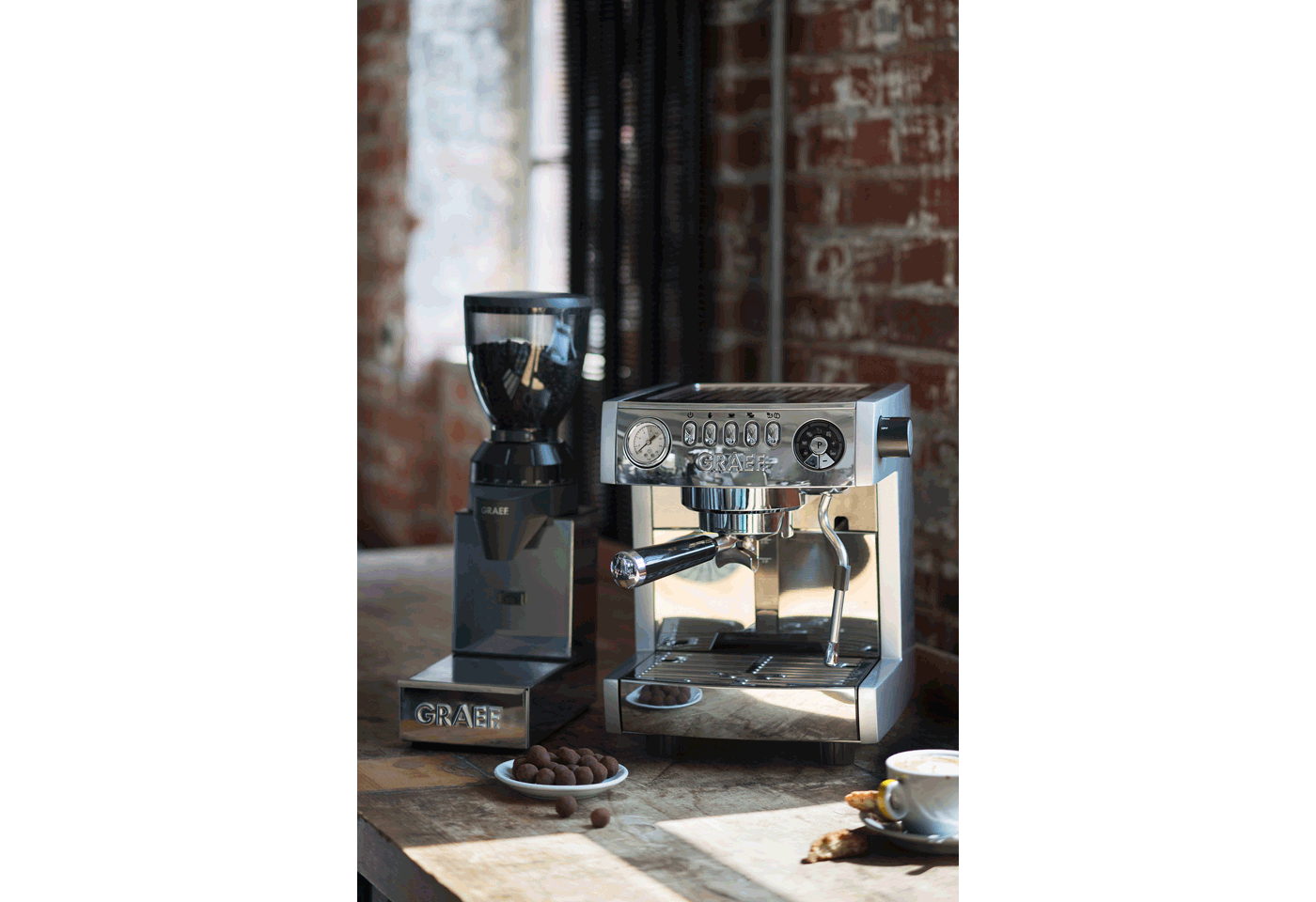 Experimentierfreudige sollten auf Einstellmöglichkeiten für Wassertemperatur und -menge achten. Wer sich in Latte-Art üben will, sollte im Bestfall Einfluss auf den Wasserdampf nehmen können, wie beim Premium-Modell „contessa“. Ein Tipp: Beim Siebträger-Kauf unbedingt den Lieferumfang beim Zubehör beachten. Verschiedene Siebeinsätze, Milchkännchen, Reinigungsset, Tamper, hochwertiger Siebträger – all das benötigen Heimbarista und all das ist bereits bei der Graef „marchesa“ enthalten. Im Budget nicht vergessen: die richtige Mühle. Nur frisch gemahlen, entfaltet Kaffee sein volles Aroma. Ein aromaschonendes, gleichmäßig mahlendes Mahlwerk mit verschiedenen Justiermöglichkeiten ist da einfach Pflicht. Das präzise Kegelmahlwerk der Kaffeemühle CM 500 von Graef liefert mit bis zu 140 Einstellungen genau den Mahlgrad, der für den Lieblingskaffee benötigt wird.