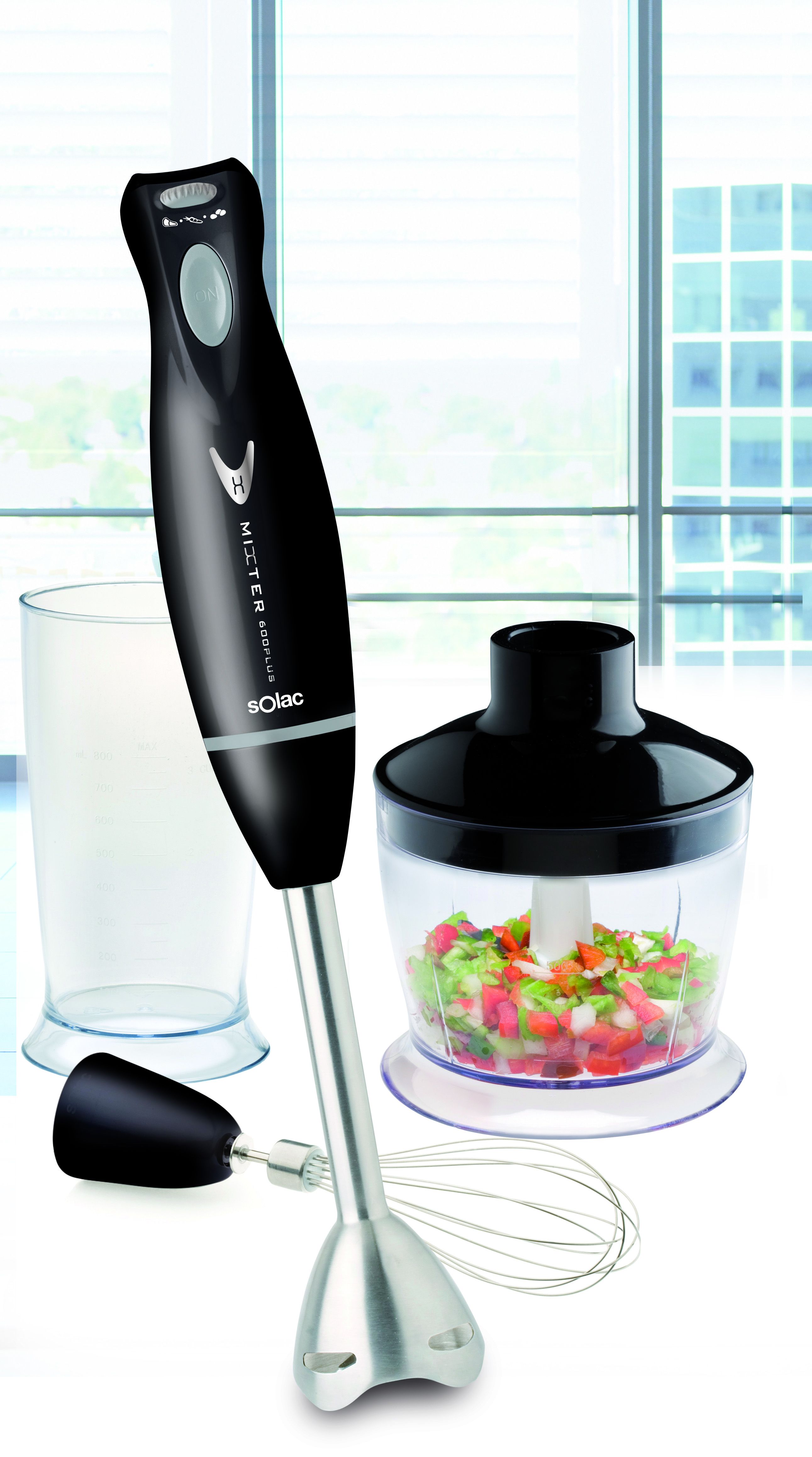 Als preisgünstigere Variante präsentiert Solac den Mixter 600 Classic. Dieser besteht aus einem Kunststoff-Fuß mit Spritzschutz und die Geschwindigkeit lässt sich, wie auch beim Mixter 600 Plus, stufenlos einstellen. Als Zubehör bringt auch er einen Messbecher (0,5 Liter) und einen Zerkleinerer mit.