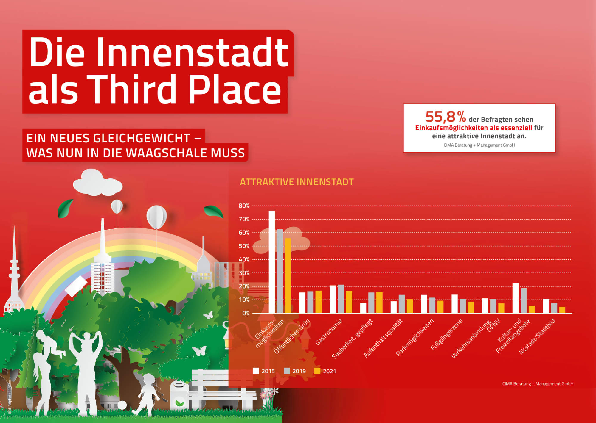 Der Einzelhandel bleibt zwar der der Anziehungspunkt Nummer eins für die Innenstädte. Gleichzeitig zeigt sich aber, dass die Innenstädte durch die Corona-Einschränkungen der vergangenen beiden Jahre enorm gelitten haben und tiefe Spuren zurückbleiben. Das macht die zum Jahresende 2022 erschienene cima.monitor – Deutschlandstudie Innenstadt 2022 deutlich. Der Handelsverband Deutschland (HDE), der Deutscher Städtetag sowie der Deutsche Städte- und Gemeindebund fordern gemeinsam ein stärkeres gesamtgesellschaftliches und politisches Engagement für die Stadtzentren und Ortskerne.
