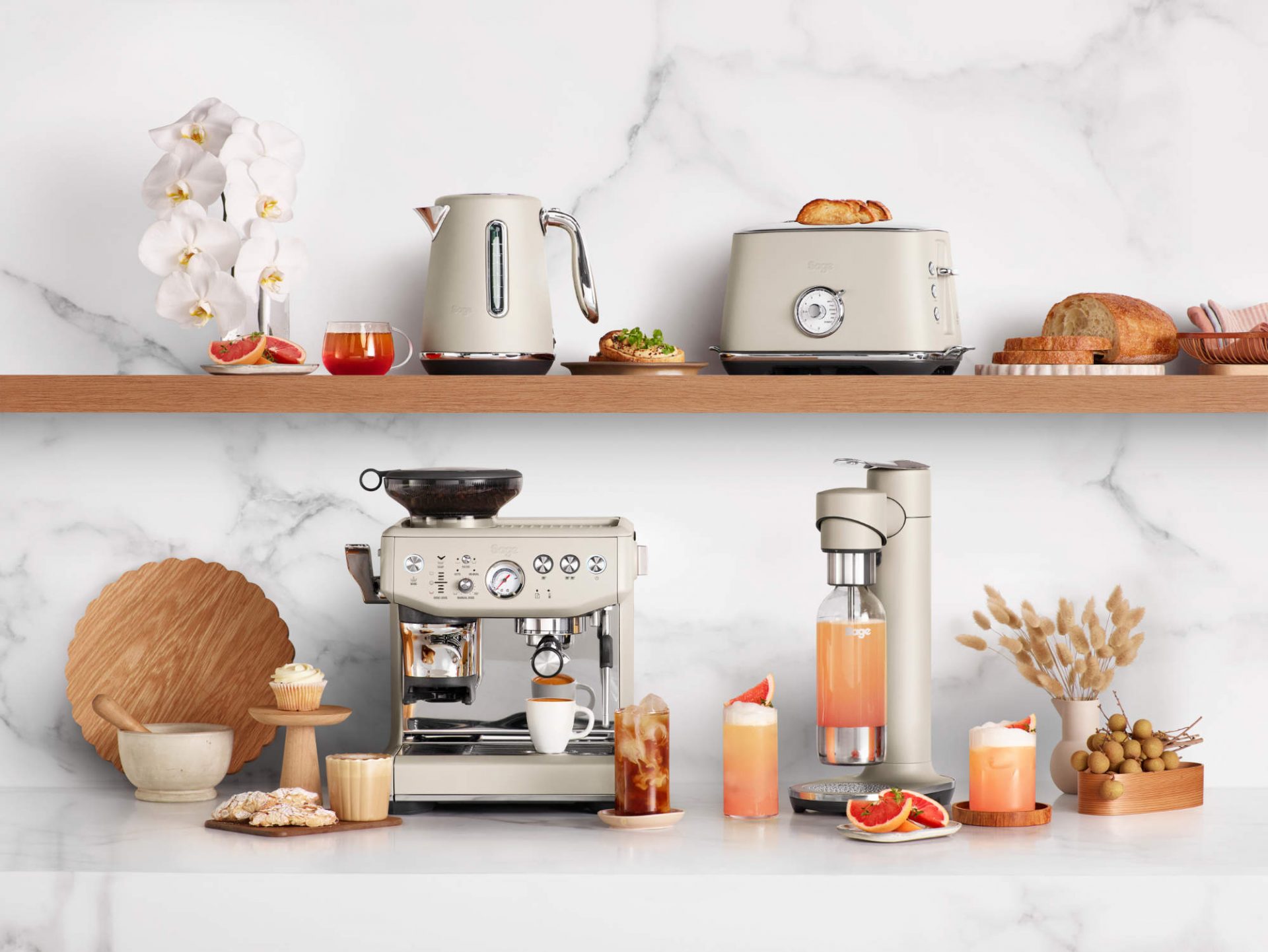 Erdige Farben bleiben 2025 weiterhin im Trend, insbesondere im Bereich Interior Design. Almond Nougat fügt sich harmonisch in verschiedene Wohnstile ein – von Industrial über Bauhaus bis hin zu Japandi. Die neue Farbvariante ermöglicht es, Geräte aus der Sage-Serie optisch aufeinander abzustimmen und ein einheitliches Gesamtbild in der Küche zu schaffen.