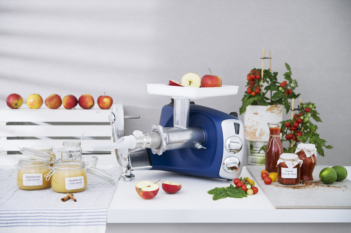 Die Ankarsrum Assistent Original Küchenmaschine ist hier der perfekte Partner in der Küche, um alle Teige zu rühren, das Apfelmus zu passieren, die Nüsse für den Teig zu mahlen, die Äpfel zu schnitzeln und die Creme zu schlagen.