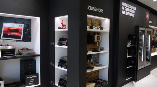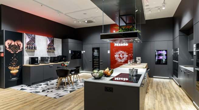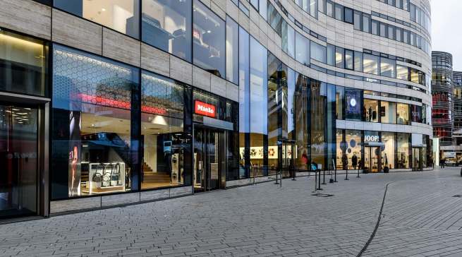Die neue Dependance des weltweit führenden Premium-Herstellers für Hausgeräte befindet sich an prominenter Adresse (Königsallee 2 im „Kö-Bogen“) mit ebenso prominenter Nachbarschaft (u.a. Apple, Porsche Design, Joop!). Das zweistöckige Ladenlokal umfasst 441 Quadratmeter Verkaufs- und Lagerfläche. Das Erdgeschoss nutzt Miele für den großen Aufschlag selbst, in der ersten Etage hat die Miele-Tochter Otto Wilde Grillers ihren ersten eigenen Showroom eröffnet.