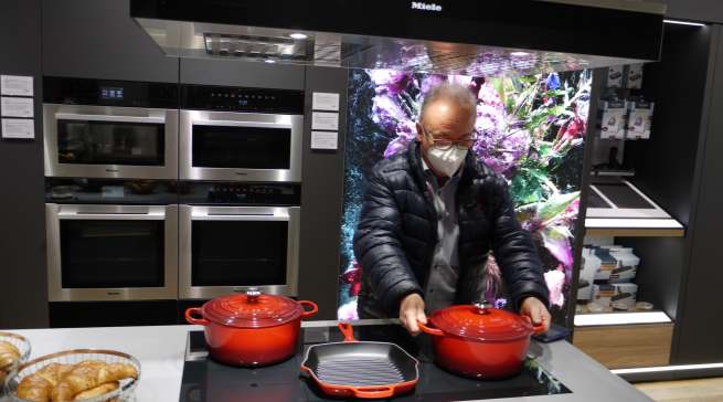 Für die kompetente Beratung zum gesamten Hausgeräte-Programm der Marke stehen Frank Schleicher, Betriebsleiter der Miele Retail GmbH und zugleich Store-Manager in Düsseldorf, und sein vierköpfiges Team bereit. „Wir führen natürlich auch live vor, was unsere Geräte können“, verspricht Schleicher beim Besuch von infoboard.de vor Ort, wobei Probebügeln und -saugen ebenso selbstverständlich seien wie die frisch zubereiteten Kostproben aus dem Dampfgarer oder Backofen.