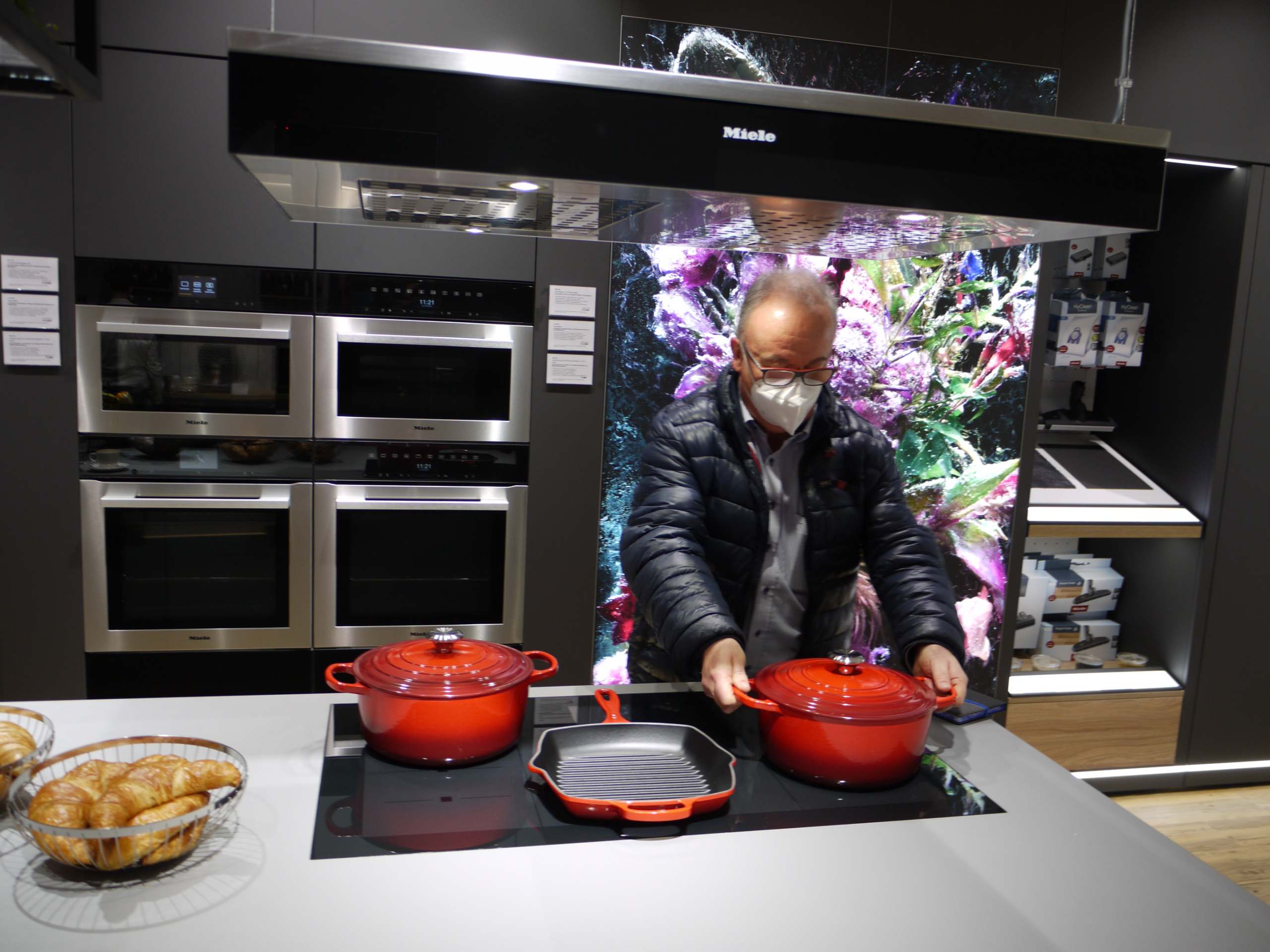 In den Wochen nach der Eröffnung können Kundinnen und Kunden renommierten Miele-Küchenchefs wie Albert Jan van Santbrink aus den Niederlanden oder Sophia Neuendorf über die Schulter blicken, die u.a. für das leibliche Wohl der Fußball- Nationalmannschaft der Frauen verantwortlich gezeichnet hat. Wie sich Auswahl, Röstung und Mahlen der Bohnen mit der weiteren Zubereitung zum perfekten Kaffeegenuss verbinden, demonstriert ein Barista der inhabergeführten Kaffee-Rösterei Vollmer aus Altenberge bei Münster.