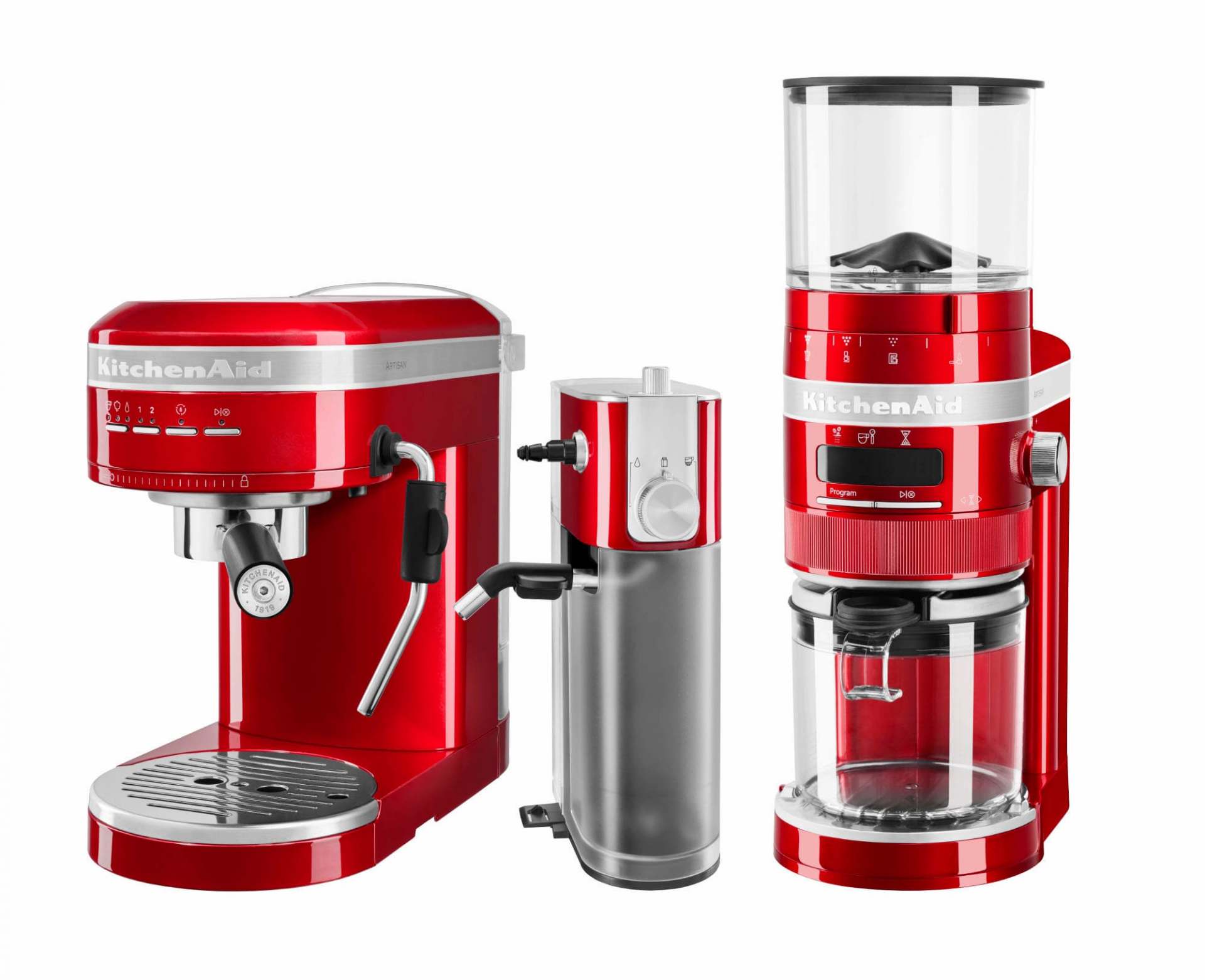 Zum weiterten Espresso-Sortiment gehören aus der Artisan-Reihe ein automatischer Milchaufschäumer und eine auf die Espressomaschine abgestimmte Kaffeemühle.