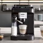 Der Mahlgrad kann individuell eingestellt werden und für gemahlenen Kaffee steht ein Pulverfach zur Verfügung. Der integrierte Speicher bietet zudem Platz für neun eigene Kaffeevariationen, zusätzlich zu den acht Rezeptvorschlägen, die ab Werk vorprogrammiert sind. Eine Live-Programmierung vor dem Kaffeebezug – auch von zwei Tassen hintereinander – ist bei allen Rezepten möglich.