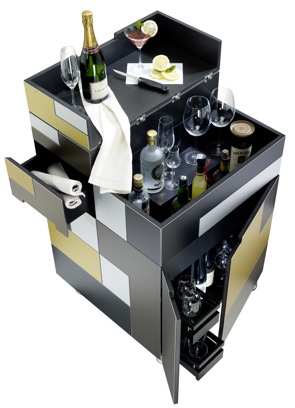 Schreinermeister Norbert Brakonier, Gründer der Marke für mobile Küchen, hat mit dem Design der Deluxe Line eine diskrete Entwurf vorgelegt, geprägt von der Liebe zur Einfachheit, doch in hochwertigen Materialien gedacht. Auch sie ist mobil: Funktionalität und Komfort orientieren sich einzig und allein am Wünschenswerten und kennen keine Grenzen des Machbaren. Der kühle Look der Technik ist verbaut zwischen Koffertüren und Klappdeckeln. Hochwertiges Macassar-Holz, echtes Blattgold oder auch Corian-Arbeitsflächen sind einige Beispiele für die einsetzbaren Werkstoffe, die individuell und ganz nach Wunsch verarbeitet werden und die vielseitig gestaltbare Optik dieser Linie prägen. Verschiedenste Varianten der Korpusse lassen sich in der Deluxe Line so zur umfangreichen Küche kombinieren und sind wie in der Classic Line auch einzeln erhältlich. Generell gilt hier: Vieles ist möglich. Die eigenen Bedürfnisse und die Beschaffenheit der Räumlichkeiten sind im Entwurf der Küche richtungsweisend.