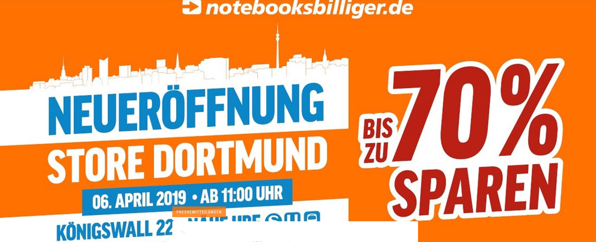 Am kommenden Samstag (6. April) eröffnet notebooksbilliger.de seinen deutschlandweit sechsten Store in Dortmund. Auf einer Ladenfläche von 300qm² können sich Käufer an umfangreichen Angeboten erfreuen. Auch in Dortmund hat notebooksbilliger.de ca. 200 Notebooks in der Ausstellung.
