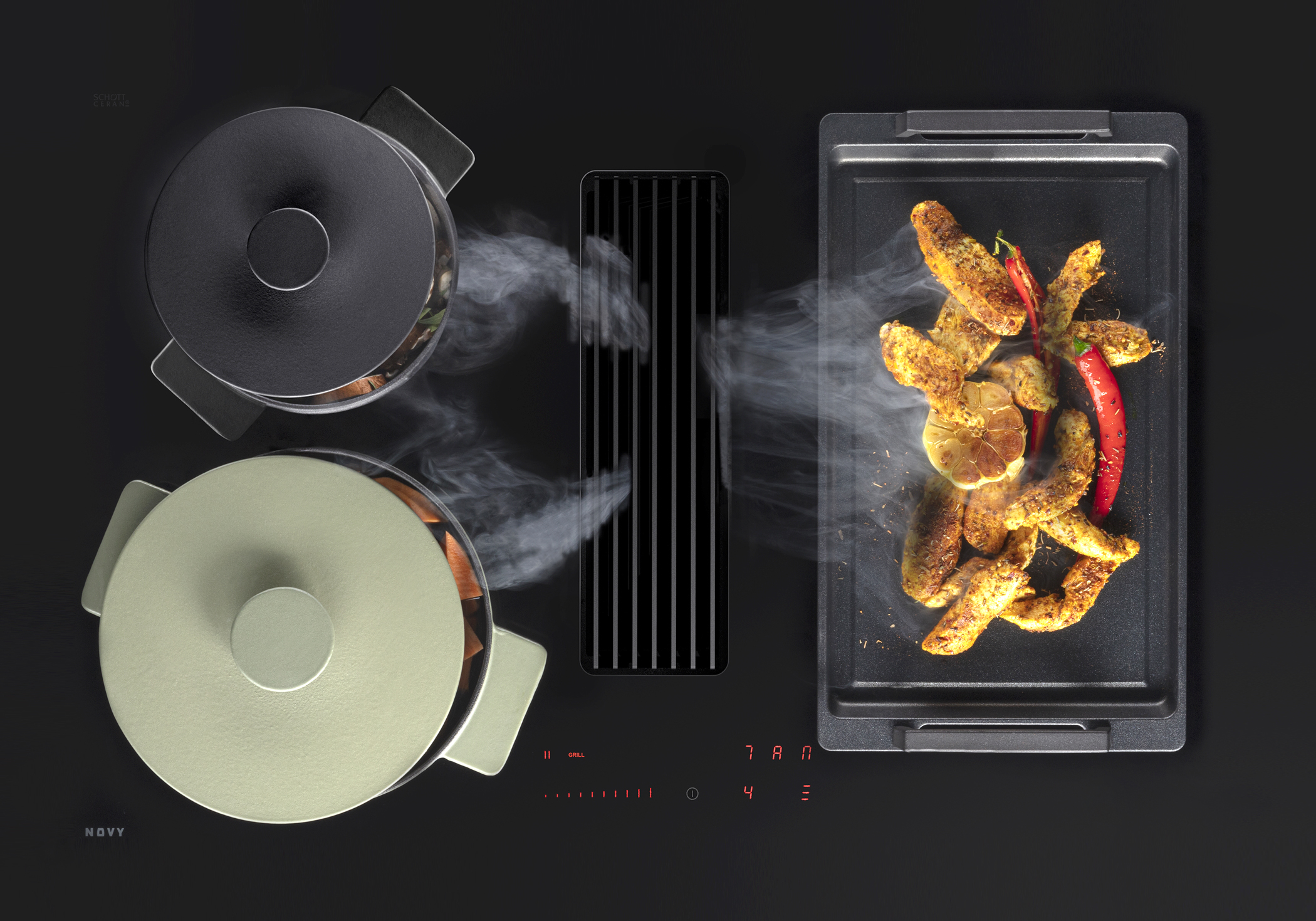 Das Novy Induktionskochfeld Easy ist mit Abluftbetrieb zum Preis von 2.799,00 € und mit Umluftbetrieb für 2,949,00 € erhältlich (Preise UVP).