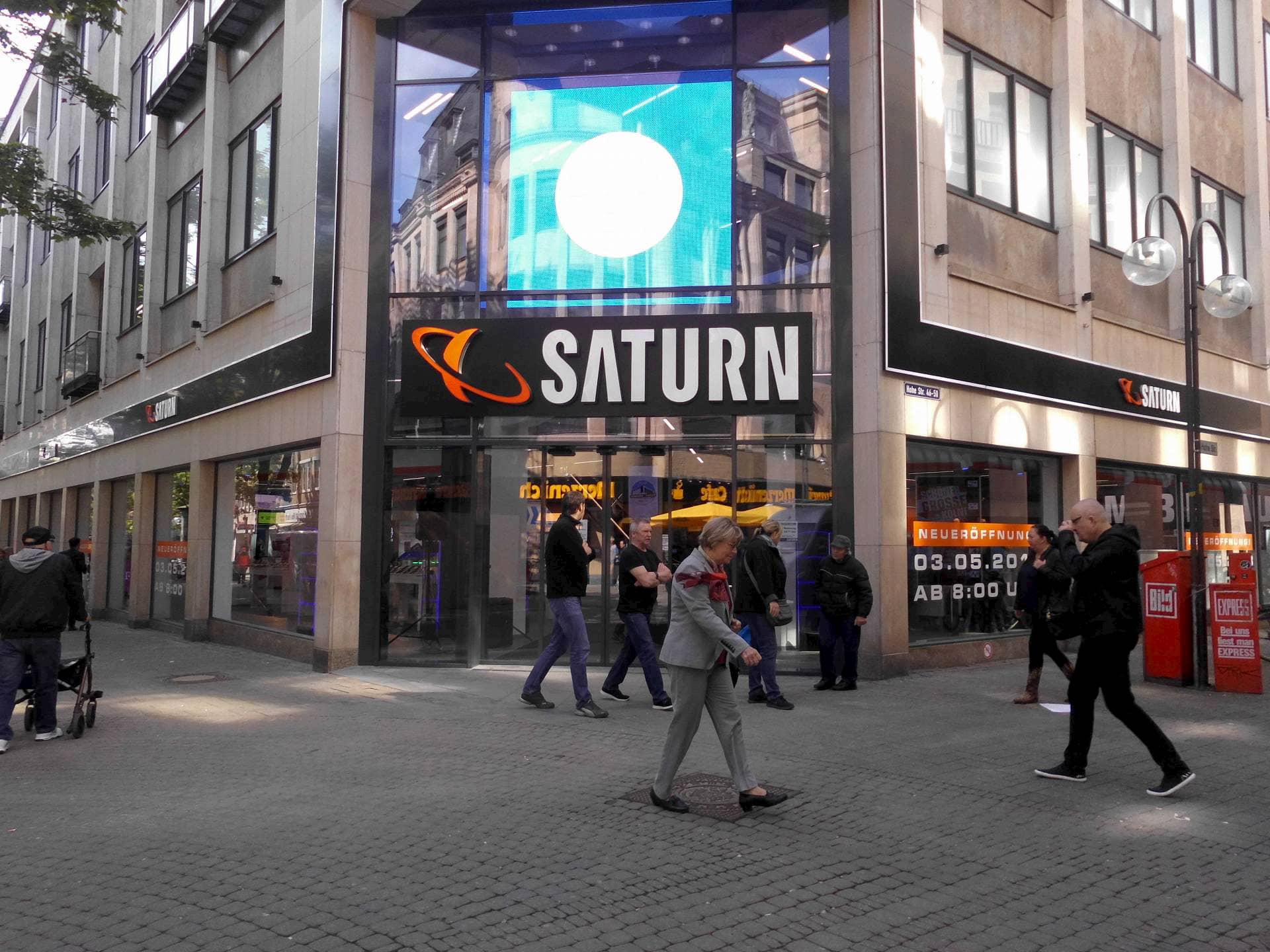 Darf ab Montag auf verkleinerter Fläche wieder öffnen: die Vorzeigefiliale von Saturn an der Schildergasse in Köln.