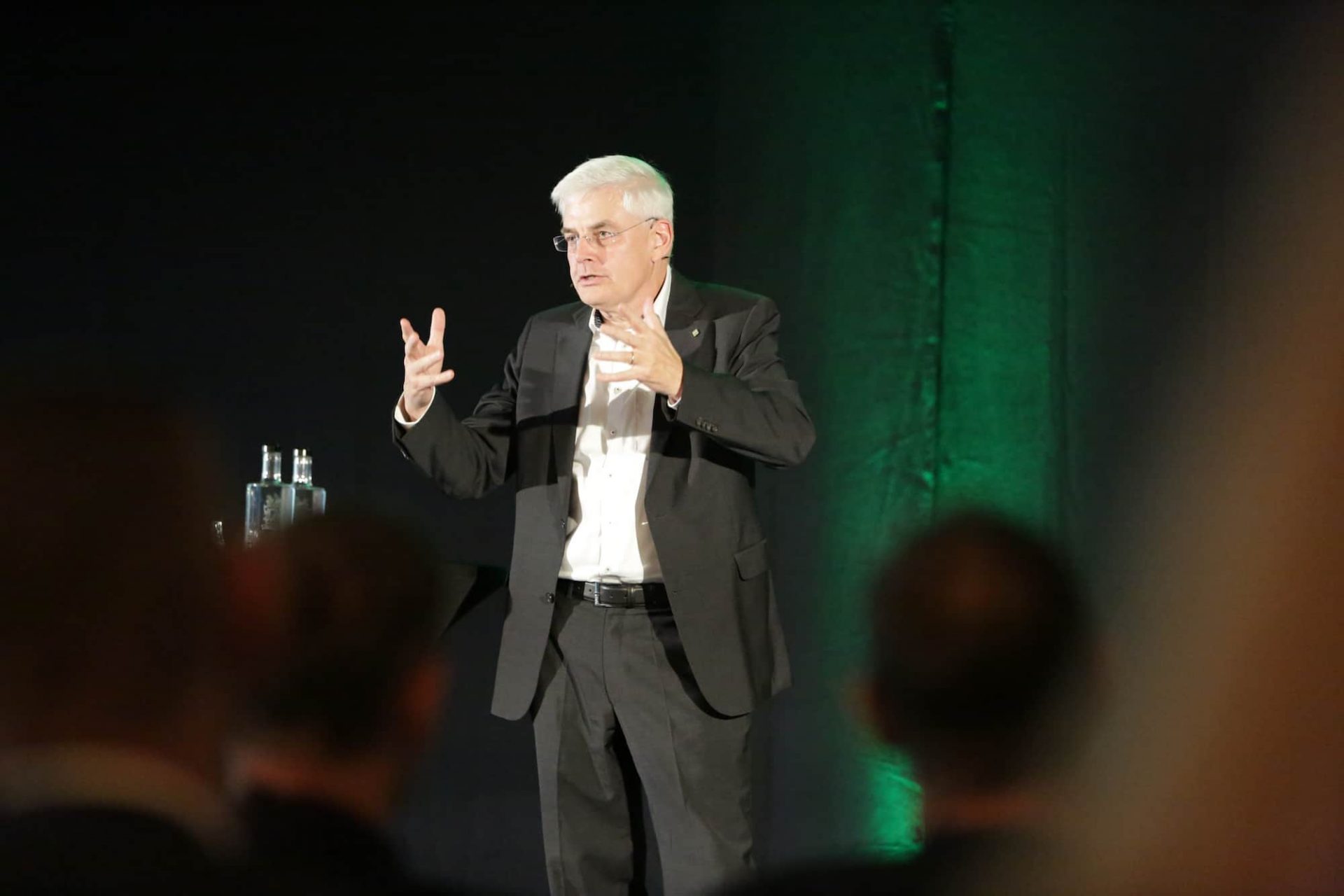 Karl Trautmann, Vorstand ElectronicPartner, in seiner Begrüßungsansprache zum traditionellen Branchentreff der Verbundgruppe in Düsseldorf am 15. November.