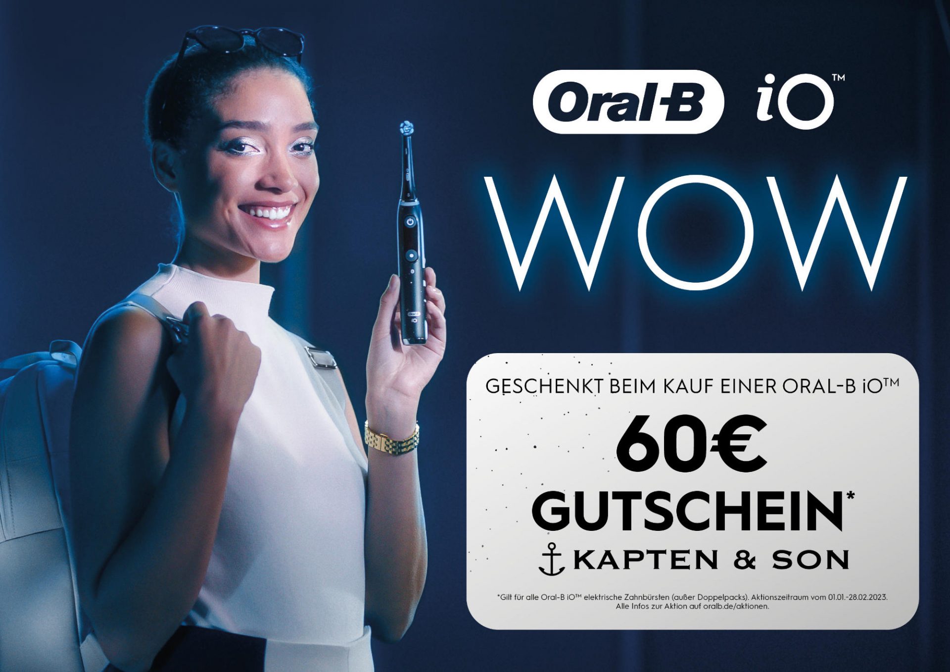 Wer bis zum 28. Februar 2023 ein Modell der Oral-B iO-Serie kauft, kann sich einen Gutschein für den Kapten & Son Onlineshop in Höhe von 60 EUR sichern. Registrierungsschluss ist der 15. März 2023.