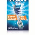 Die Oral-B WOW XXL Edition Professional Care sorgt für einen noch größeren WOW-Effekt am Morgen: Der Aufsteckbürstenkopf rotiert 8.800 mal und pulsiert 40.000 mal pro Minute. Dank dieser 3D-Reinigungstechnologie wird bis zu 100 Prozent mehr Plaque entfernt als mit einer herkömmlichen Zahnbürste. Die Zahnbürste ist in drei Reinigungsmodi einzustellen: „Reinigen“, „Sensitiv“ und „Aufhellen“. Für eine gleichmäßig gründliche Reinigung sorgt der Professional Timer, der auf 4 x 30 Sekunden eingestellt ist. Im Lieferumfang enthalten sind sieben Aufsteckbürsten: 1x „Precision Clean“, 1x „Tiefenreinigung“ für gründliche Reinigung auch an schwer erreichbaren Stellen, 1x „3D White“ zur Entfernung oberflächlicher Verfärbungen sowie 2x GRATIS „Sensitive“ zur besonders sanften Reinigung und 2x GRATIS „Interspace“ für die Pflege bei Brücken, Kronen oder Implantaten sowie in Zahnzwischenräumen.