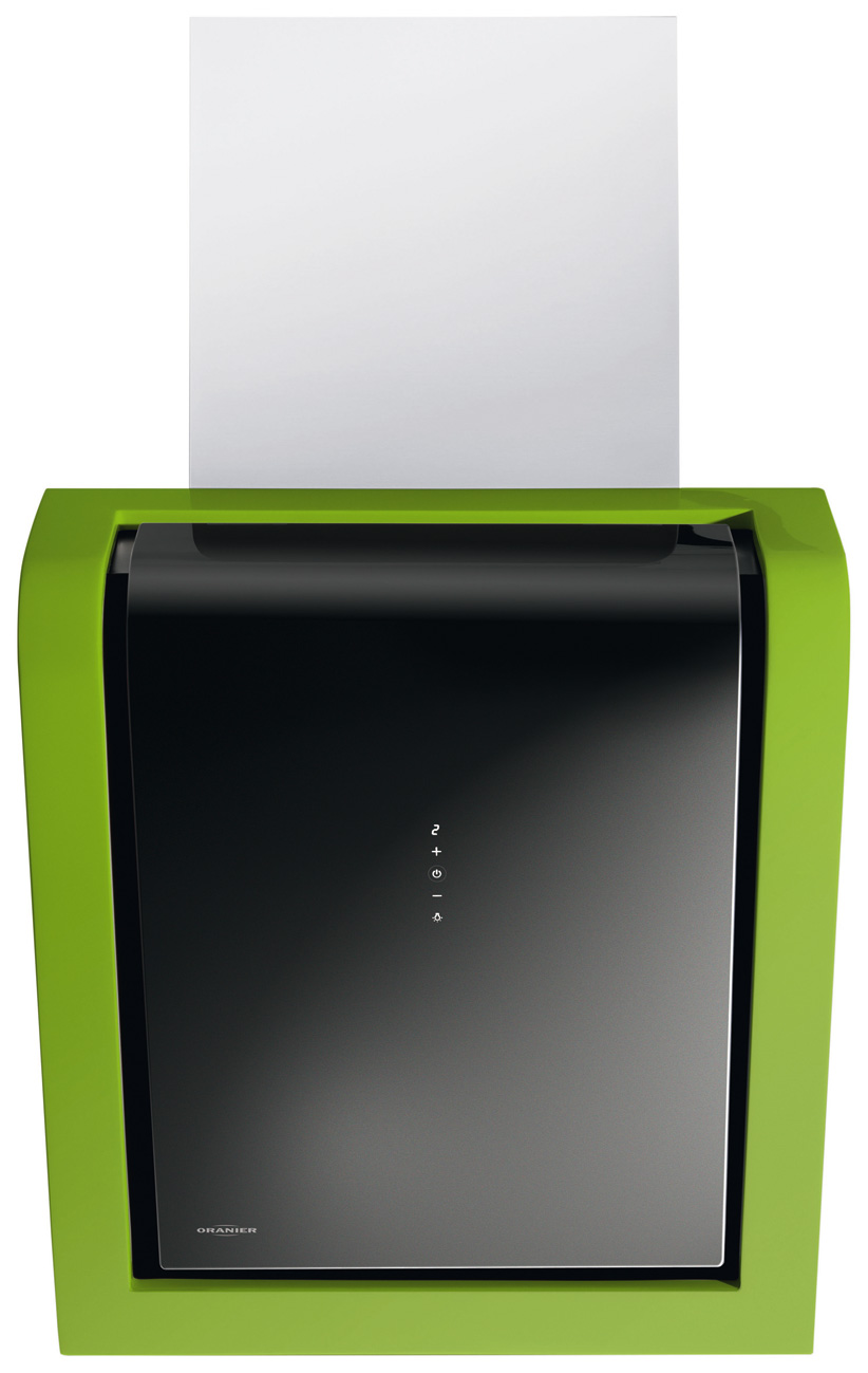 Die Oranier Dunstabzugshaube Limara 60 S zeigt in der Frontansicht einen gebogenen Sicherheits-Glasschirm, der über einen zweifachen Liftbeschlag und Scharniere mit dem Körper der Haube verbunden ist. Der Glasschirm wird durch einen Wechselrahmen aus Fiberglas eingefasst, der in den Farben Weiß, Schwarz, Lindgrün, Rot und Magnolie erhältlich ist und sich nachträglich auswechseln lässt, sodass die Haube an zukünftige Farbtrends oder veränderte Einrichtungsvorlieben angepasst werden kann.