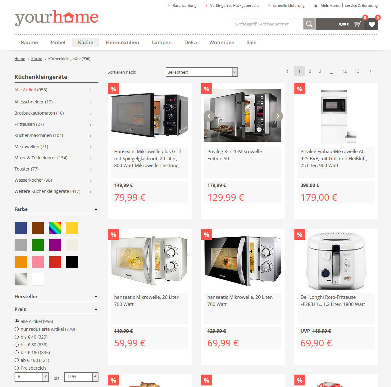 Virtuelle Shopper finden hier alles zu den Themen Möbel, Heimtextilien, Wohnaccessoires und eben auch Haushaltsgeräte wie Kühlschränke und Kaffeemaschinen, Herde, Backöfen und Kochfelder, Waschmaschinen und (Wasch-)Trockner und eine Armada an Kleingeräten vom Allesschneider bis zum Wasserkocher. Interessant dabei: Das Gros der yourhome-Produkte finden wir natürlich schon lange auch auf der Mutter-Website von otto.de. Diese Dopplung im Angebot ist ein stattsam bekannter Teil der Otto-Online-Strategie.