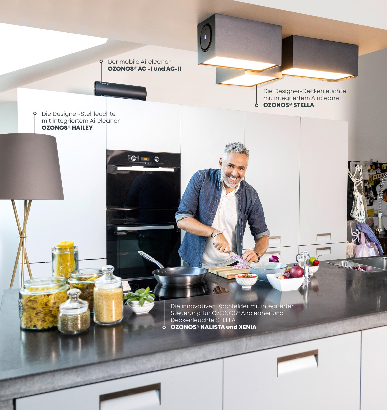 Die Kochfelder können die Aircleaner in den Versionen AC-I, AC-II und die Deckenleuchte Stella in der Küche per Touchdisplay ansteuern. Zusätzlich gibt es die Kalista Kochfelder in der Muldenlüfter-Variante mit eingebautem Dunstabzug,