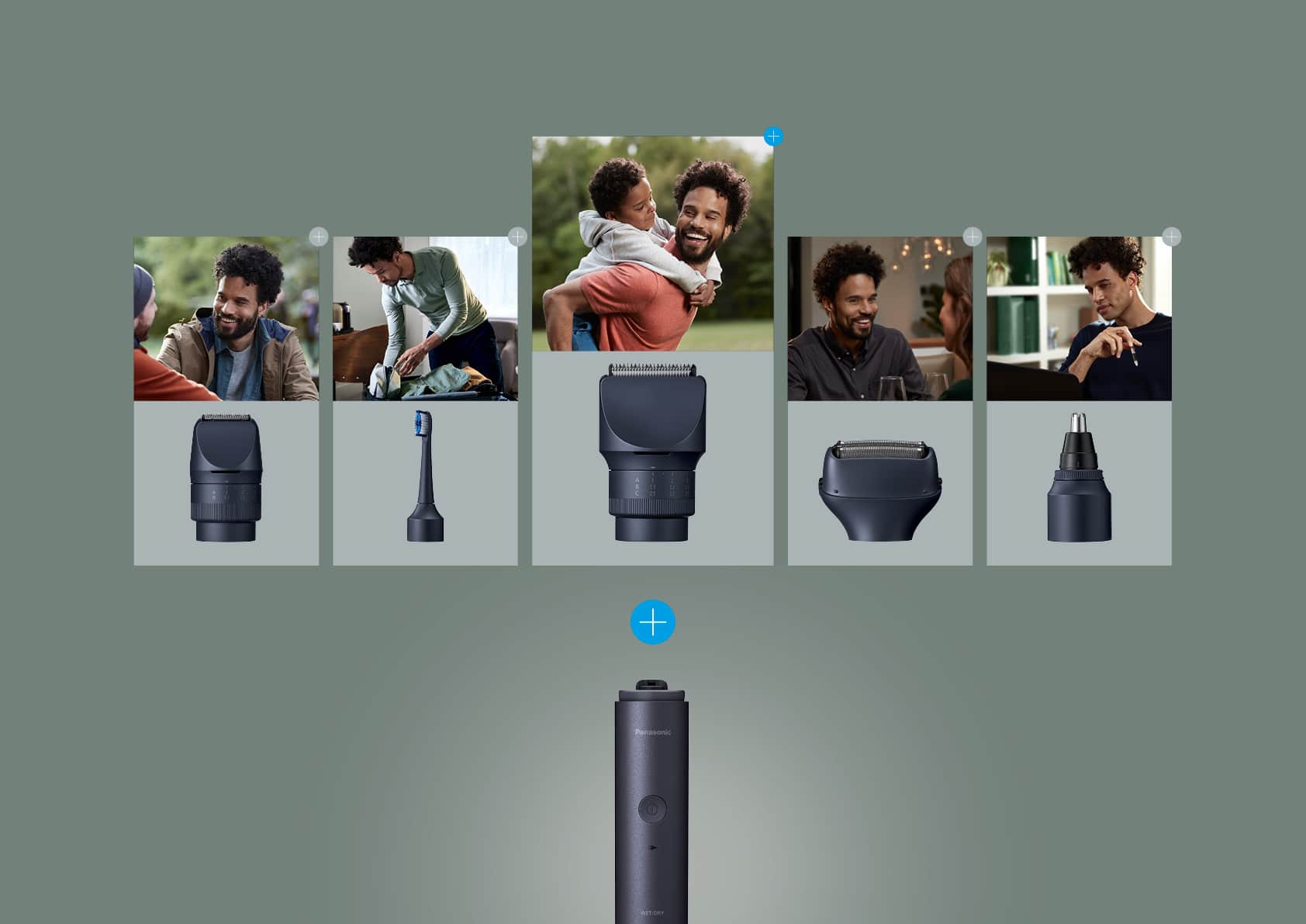 Erstmalig können sich Anwender ihr persönliches Pflegetool von Grund auf modular zusammenstellen. Aufbauend auf einem Akku-Handgriff stehen hierfür einzeln erhältliche Aufsätze zum Haare und Bärte schneiden, Rasieren, Körperhaare trimmen, Ohren-, Nasenhaare und Augenbrauen in Form bringen und sogar Zähne putzen zur Verfügung.