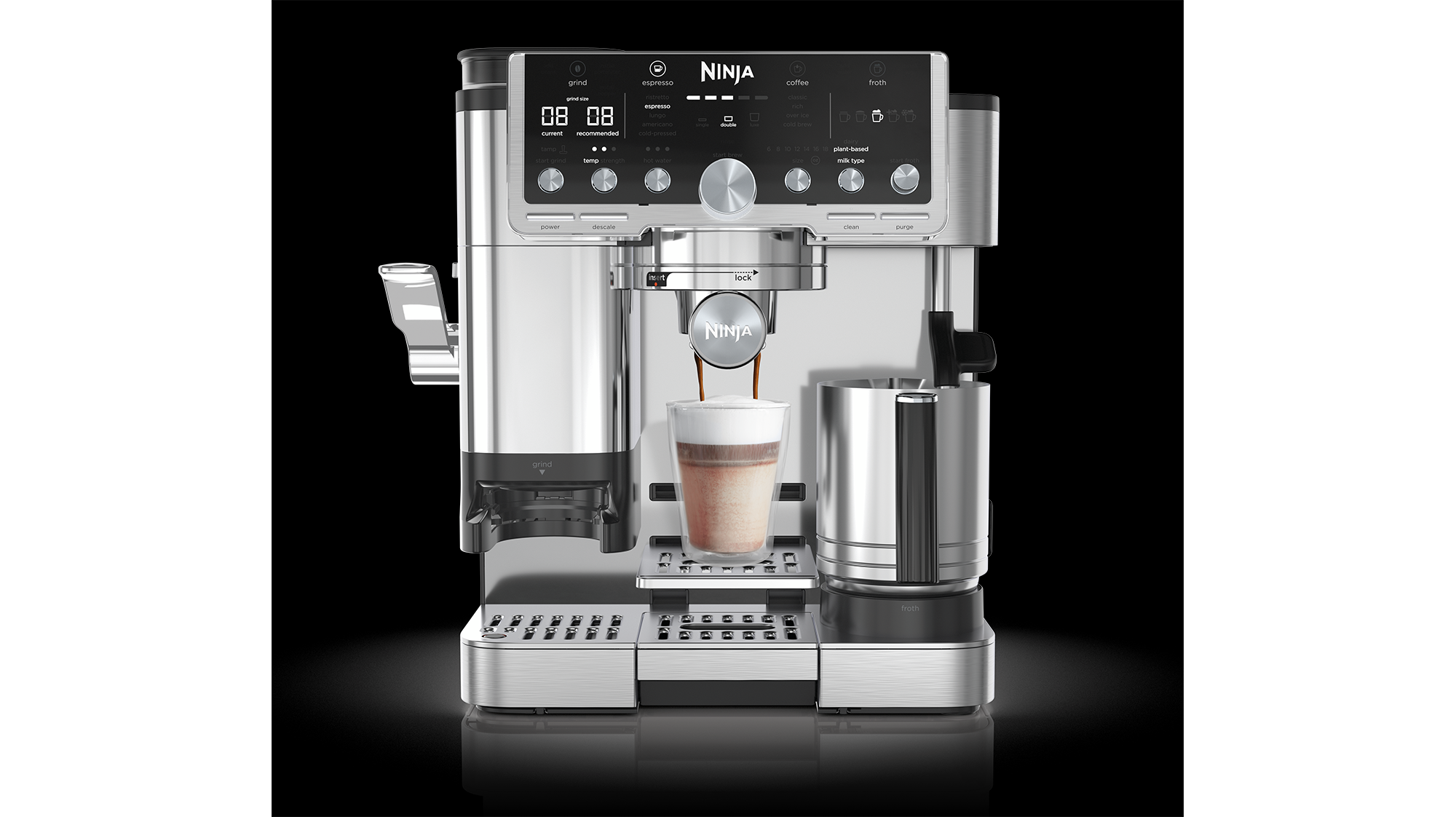 Sie bietet eine noch größere Bandbreite an Individualisierungsmöglichkeiten. Mit mehr als 29 Getränke-Einstellungen (u.a. 7 Espresso-Arten, 4 Kaffee-Arten, 7 Getränkegrößen und 5 Milchschaum-Einstellungen), bleiben keine Wünsche offen. Neben den bewährten Funktionen der Vorgängermodelle, etwa der Barista Assist Technology, die automatisch kalibriert und präzise Einstellungen empfiehlt, zeichnet sich die Pro-Version durch einen integrierten Tamper sowie ein XL-Milchkännchen aus. Als 3-in-1-Gerät vereint die Ninja Luxe Café Pro Espresso-, Filterkaffee- und Cold-Brew-Maschine in einem und verfügt zudem über ein integriertes Mahlwerk mit 25 Einstellungen. Nie war es so leicht, zum eigenen Barista zuhause zu werden.