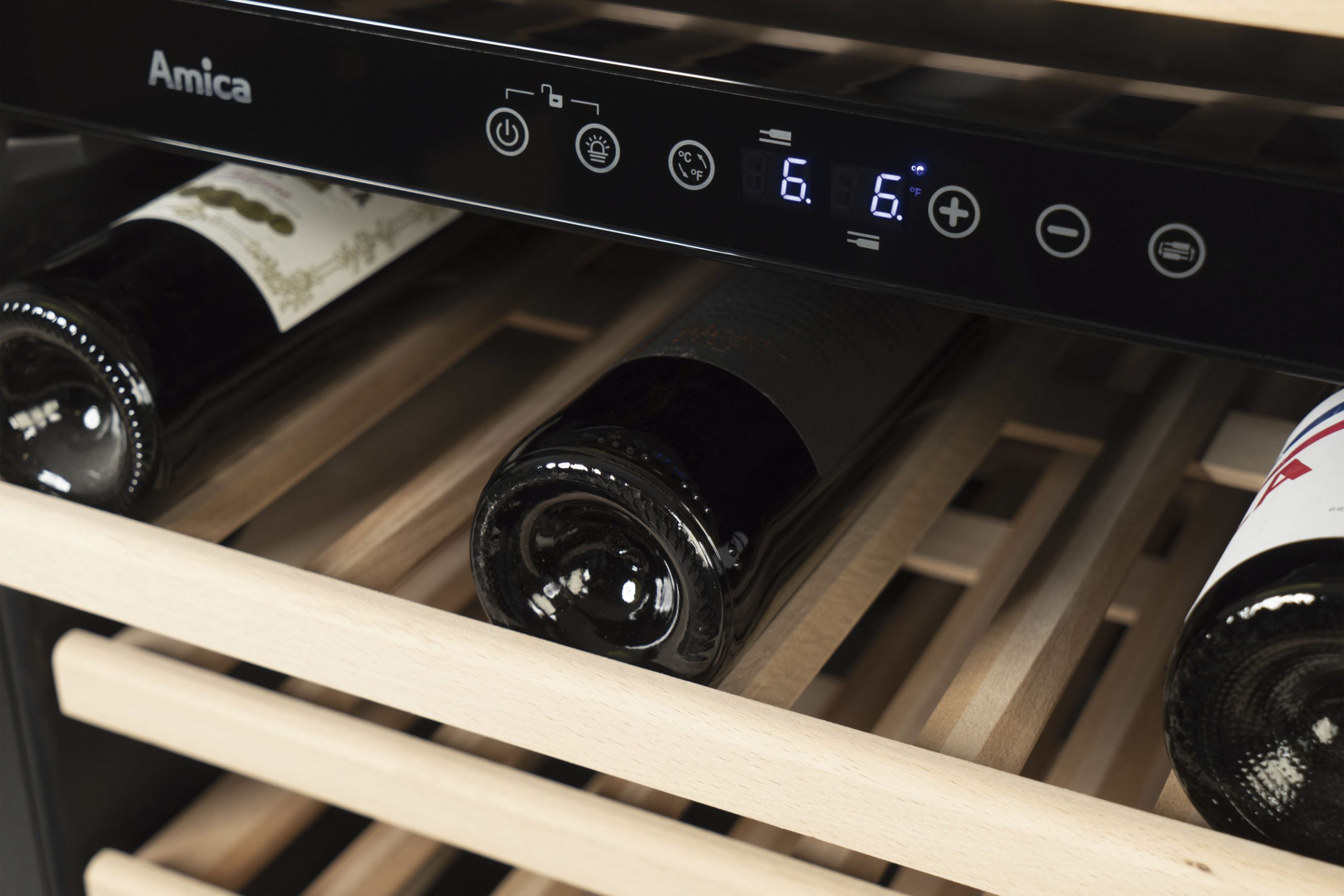 Die Weintemperierschränke von Amica gewährleisten optimale Lagerungsbedingungen und bieten mit unterschiedlichen Größen und Designs die richtige Lösung für jeden Verbraucheranspruch. Vom 185 cm großen Standmodell, das auch umbaufähig ist, über Geräte, die perfekt unter eine Arbeitsplatte passen und 60, 30 oder sogar nur 15 cm Platz benötigen, hält die Marke ein breites Sortiment bereit. Ob in Schwarz, im Edelstahl-Look oder angesagtem Retro-Design, für jede Küchensituation gibt es das passende Modell.