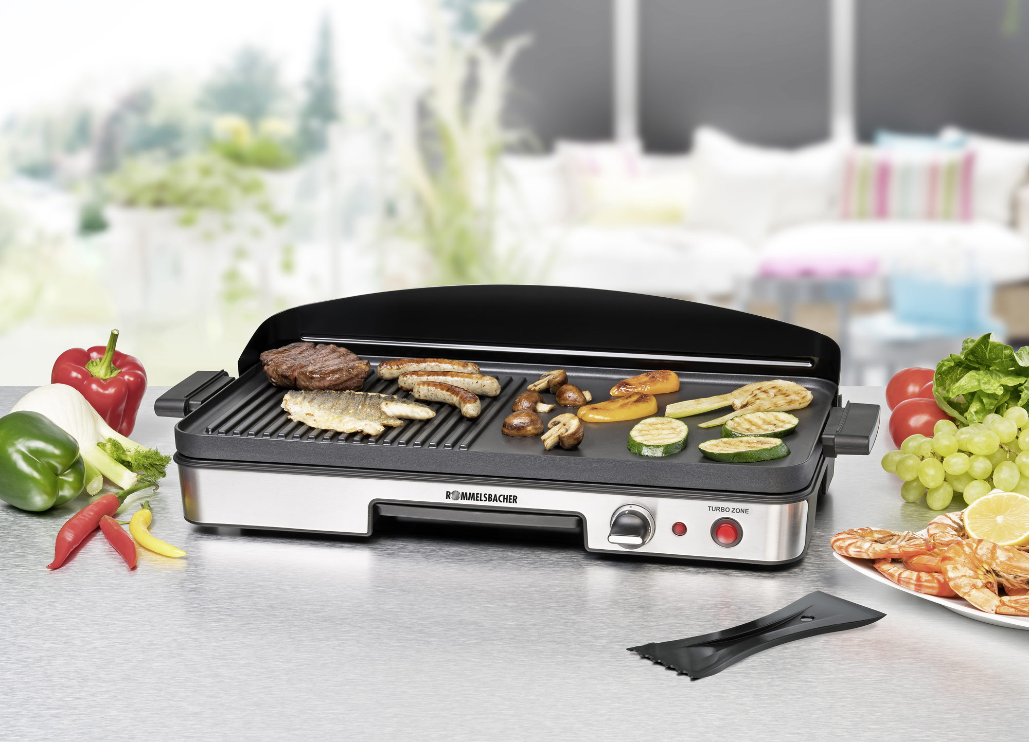Die Heizelemente sind direkt in die Grillplatten eingearbeitet, dadurch wird eine optimale Temperaturverteilung erreicht; die Regelung der Temperatur erfolgt stufenlos. Als weiteres Plus hat dieser Grill eine zuschaltbare Turbo-Grillzone für schnelles, scharfes Anbraten.