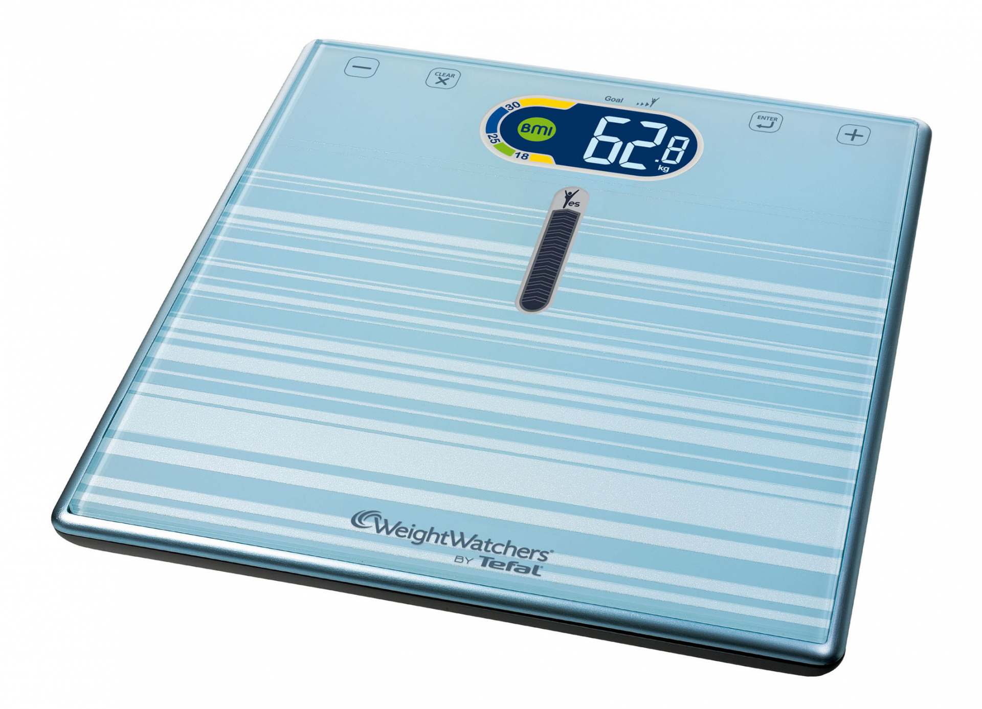 Die in Kooperation entwickelte Personenwaage Tefal Weight Watchers ermittelt das aktuelle Gewicht und visualisiert auf einem Leuchtbalken den Fortschritt auf dem Weg zum eigenen Wunschgewicht. Ein Farbkreis zeigt, ob sich das aktuelle Gewicht im Idealbereich bewegt.
